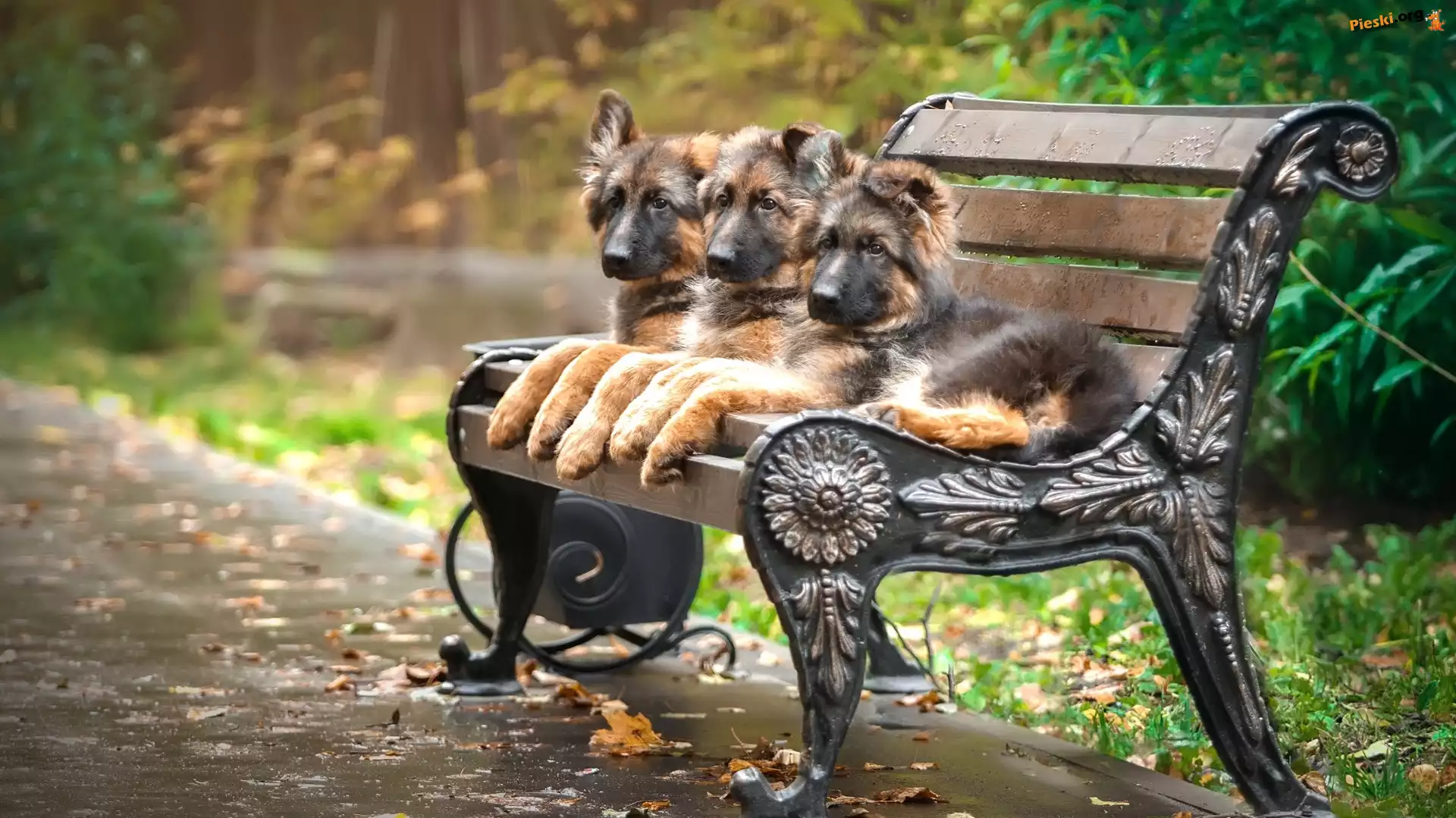 Alejka, Szczeniaki, Trzy, Owczarki niemieckie, Ławka