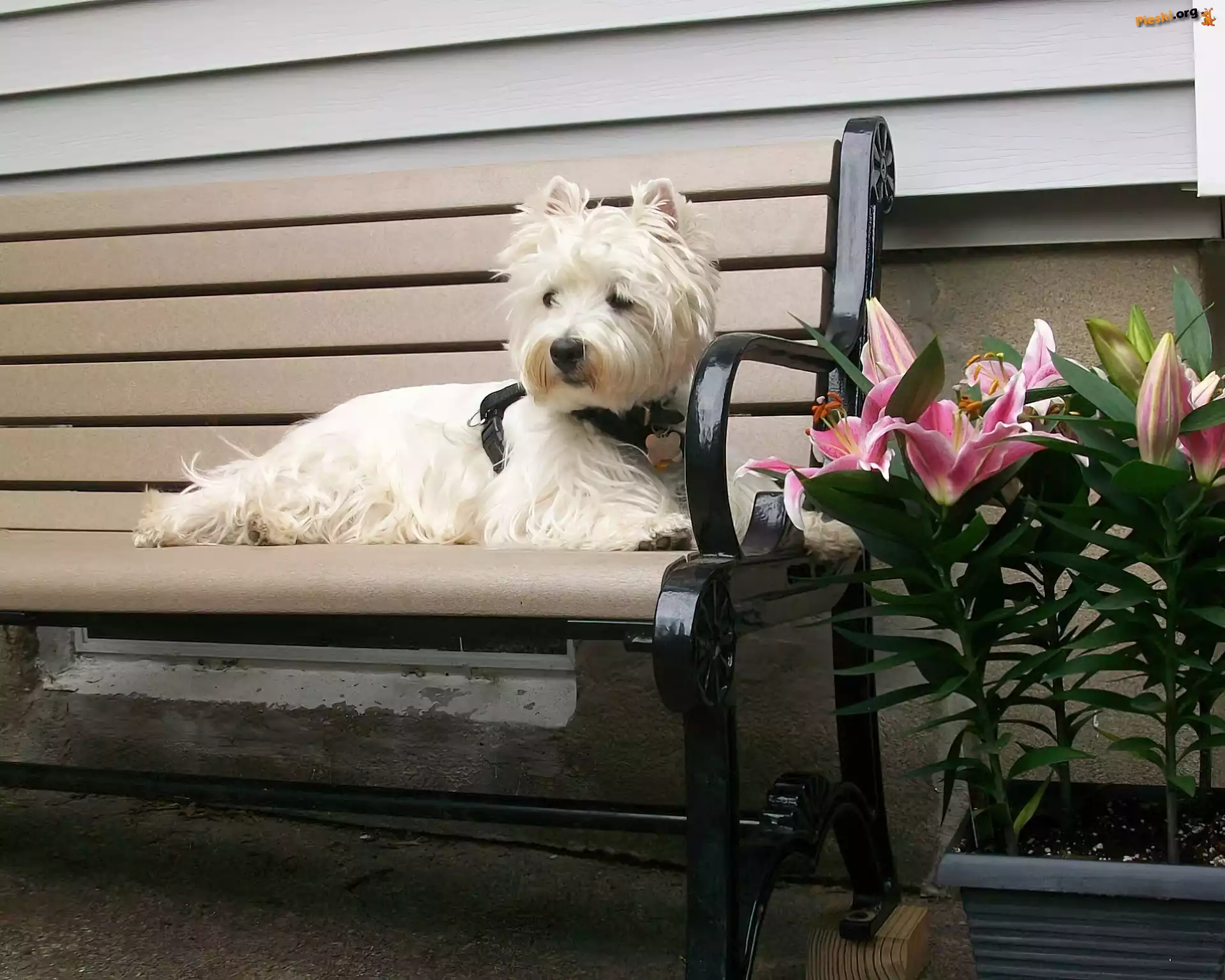 Piesek, Ławka, Kwiaty