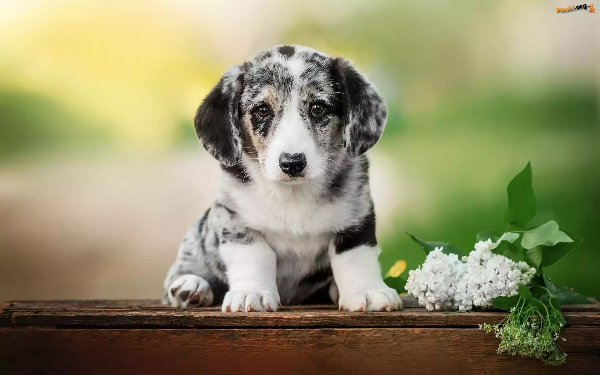 Biały, Szczeniak, Welsh corgi cardigan, Bez, Pieski