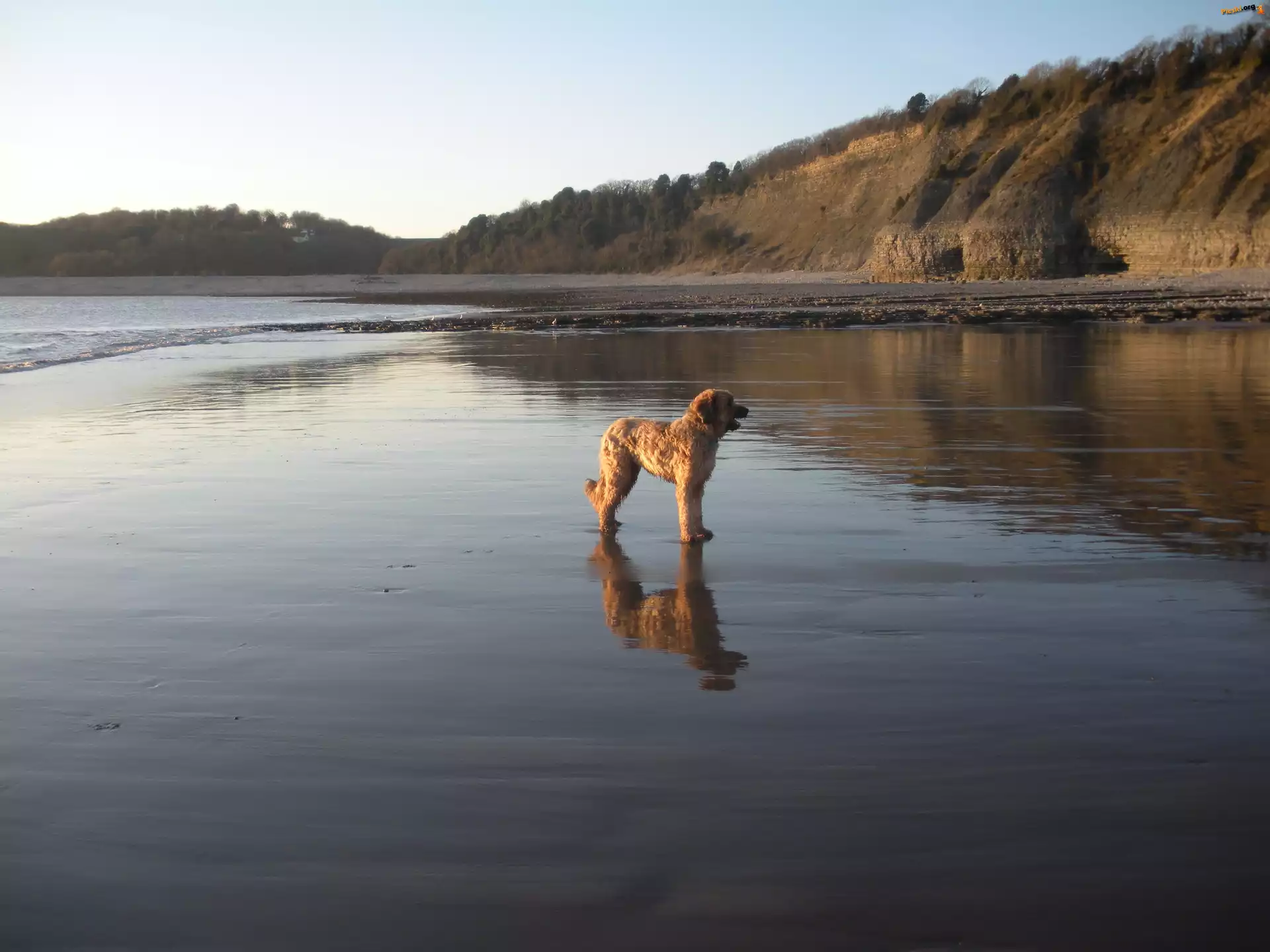 Briard, woda, Pieski