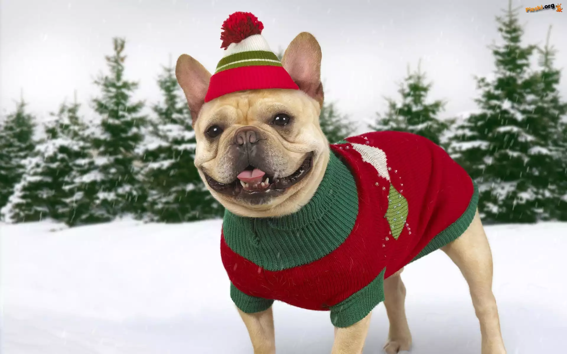 Zima, Ubrany, Buldog, Pieski