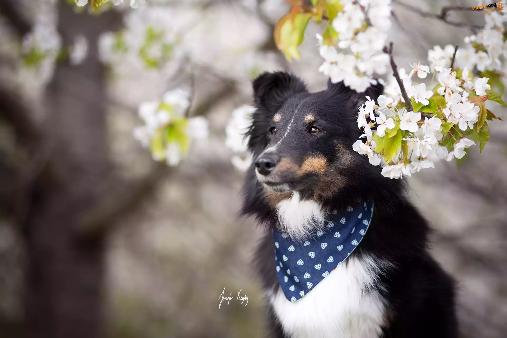 Chustka, Pies, Owczarek szetlandzki, Kwiaty