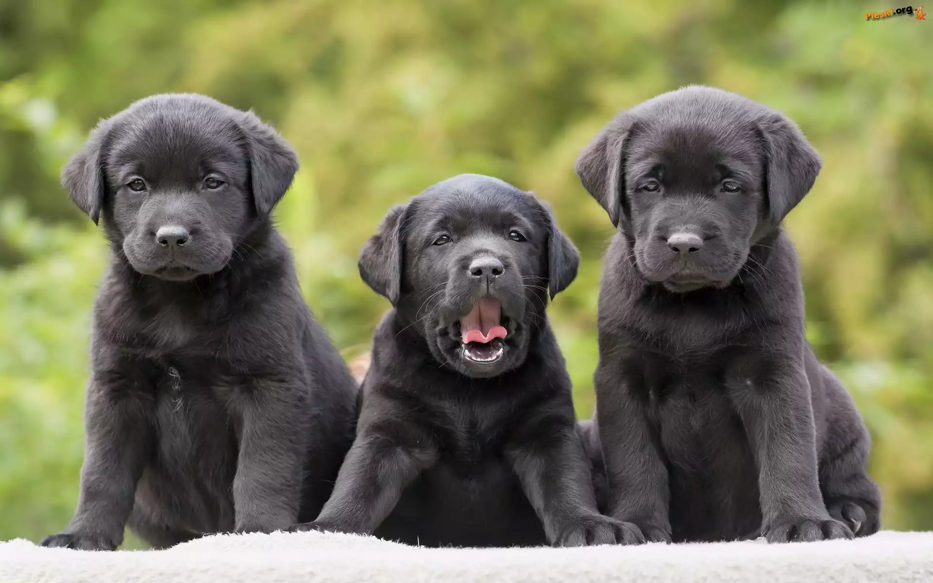 Szczeniaki, Trzy, Czarne, Retrievery, Pieski