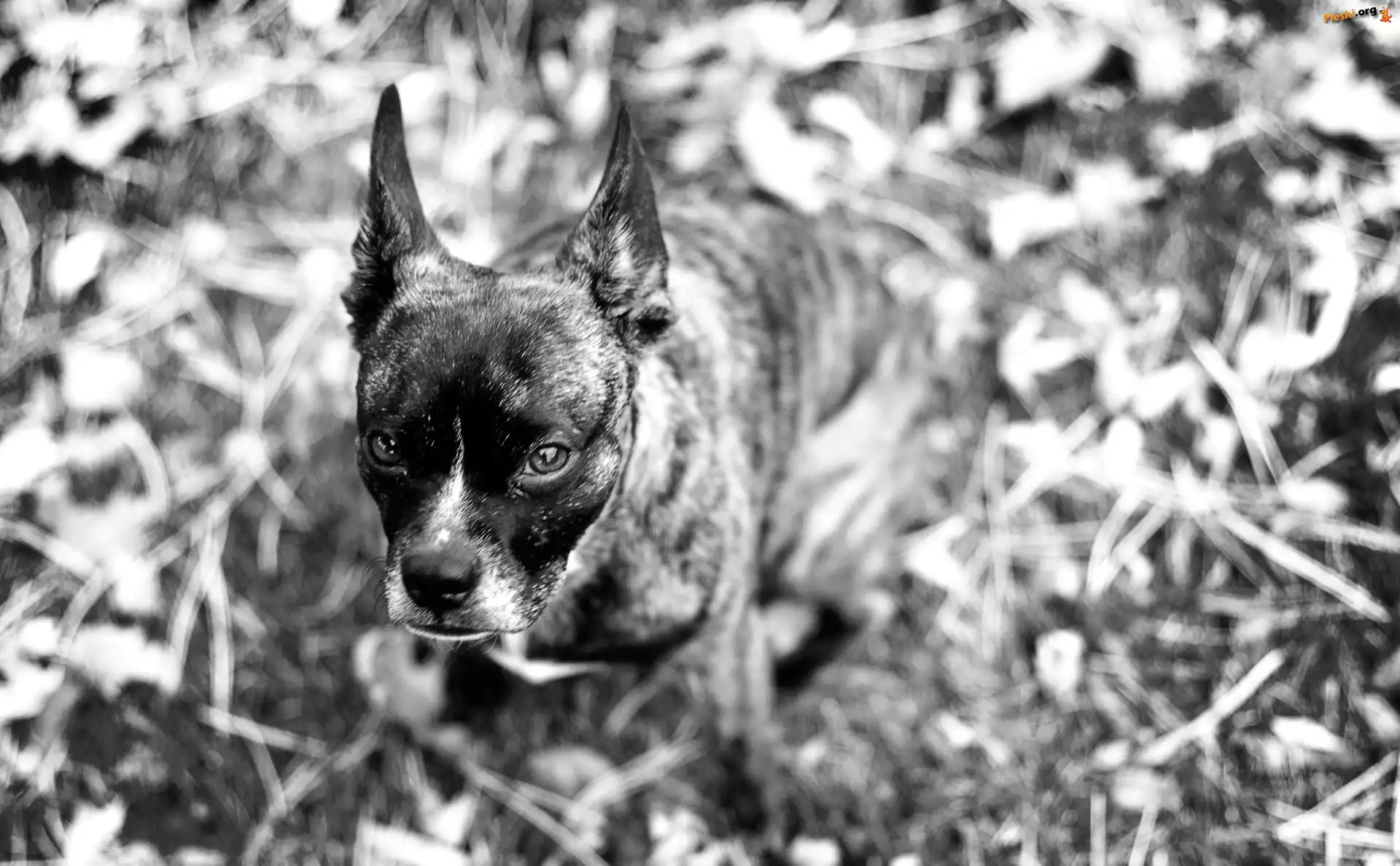 Smutne, Czarny, Pies, Oczy Jesienne, Pies, Spojrzenie, Licie Jack Russell Terrier, Kwiatek Las, Pies, Braque d Jamnik, Obroa, Serduszko Gowa, Owczarka pirenejskiego, Berger des Pyrnes Labrador Retriever Bernardyn, Kotki, Koty
