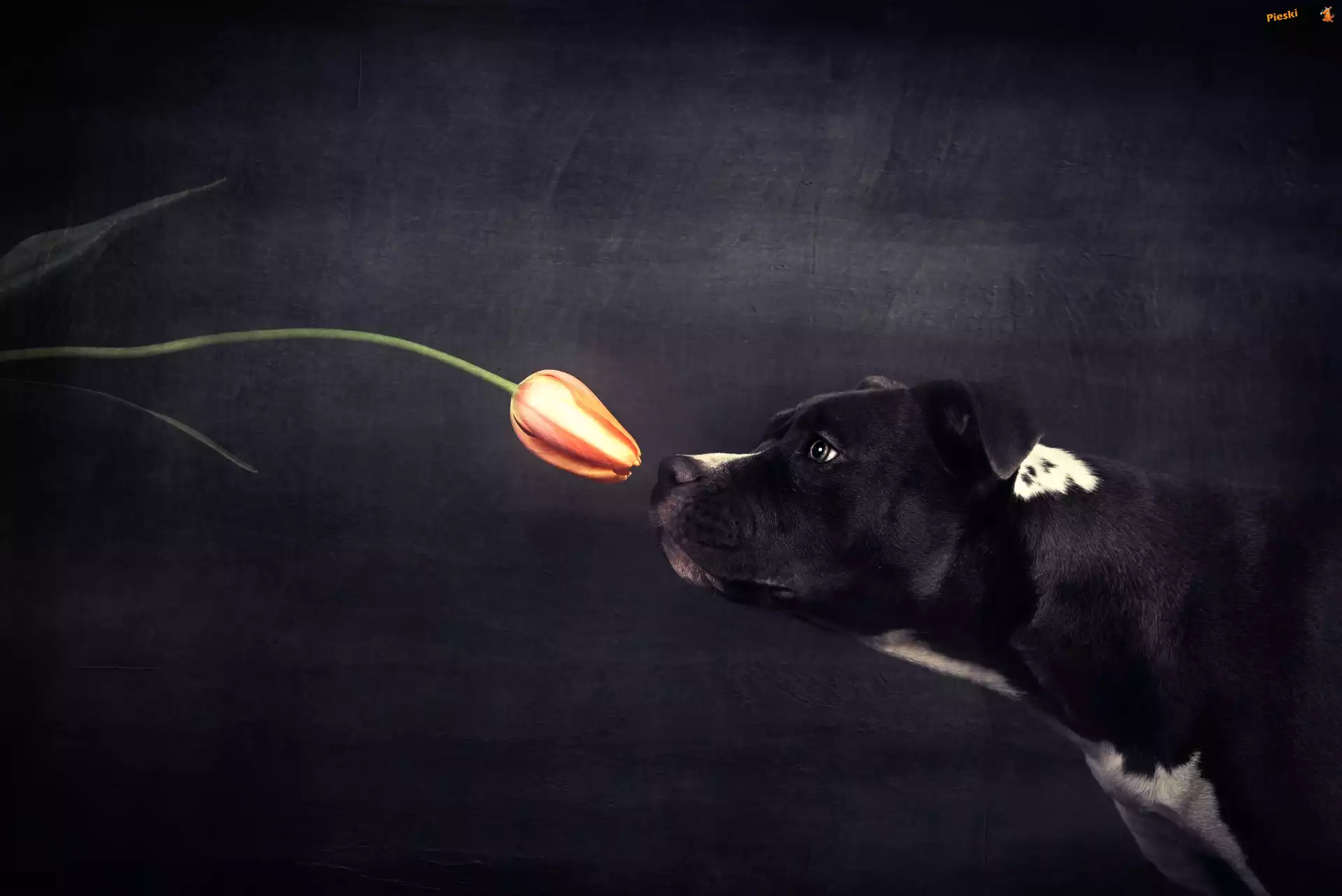 Czarno-biały, Pies, Tulipan
