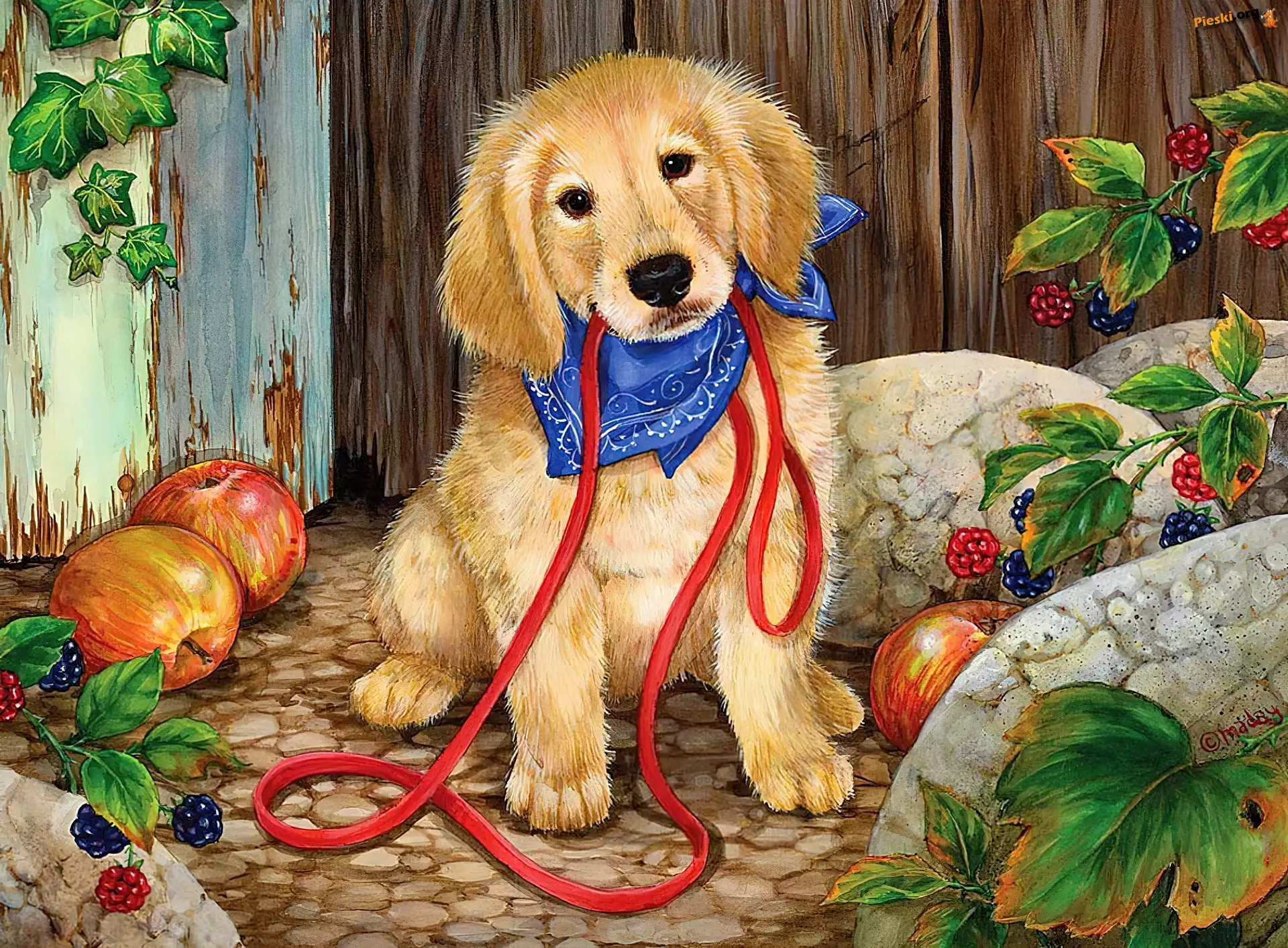 Czerwona, Pies, Mały, Szczeniak, Smycz, Pieski
