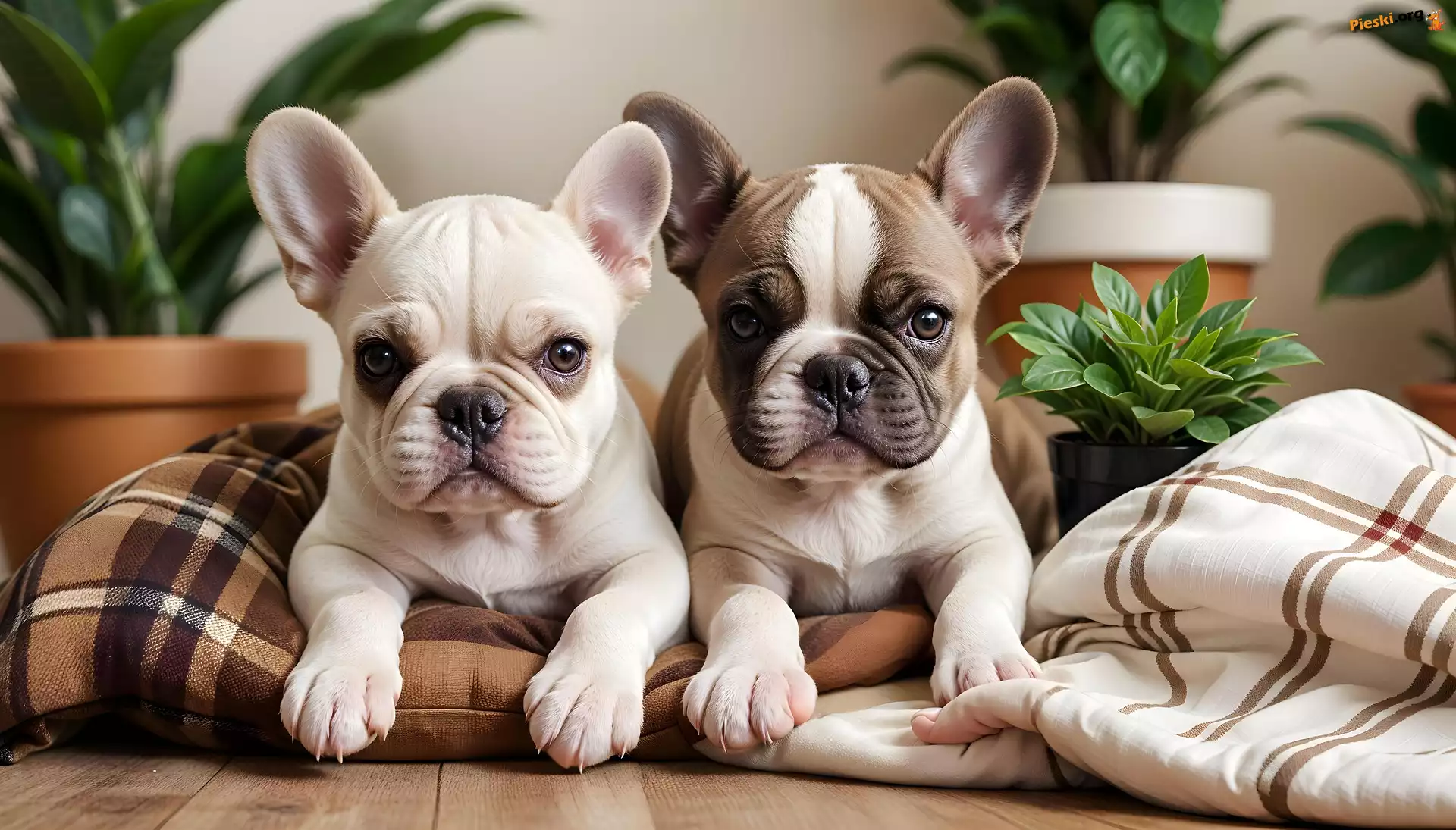 Buldogi francuskie, Szczeniaki, Psy, Dwa, Pieski