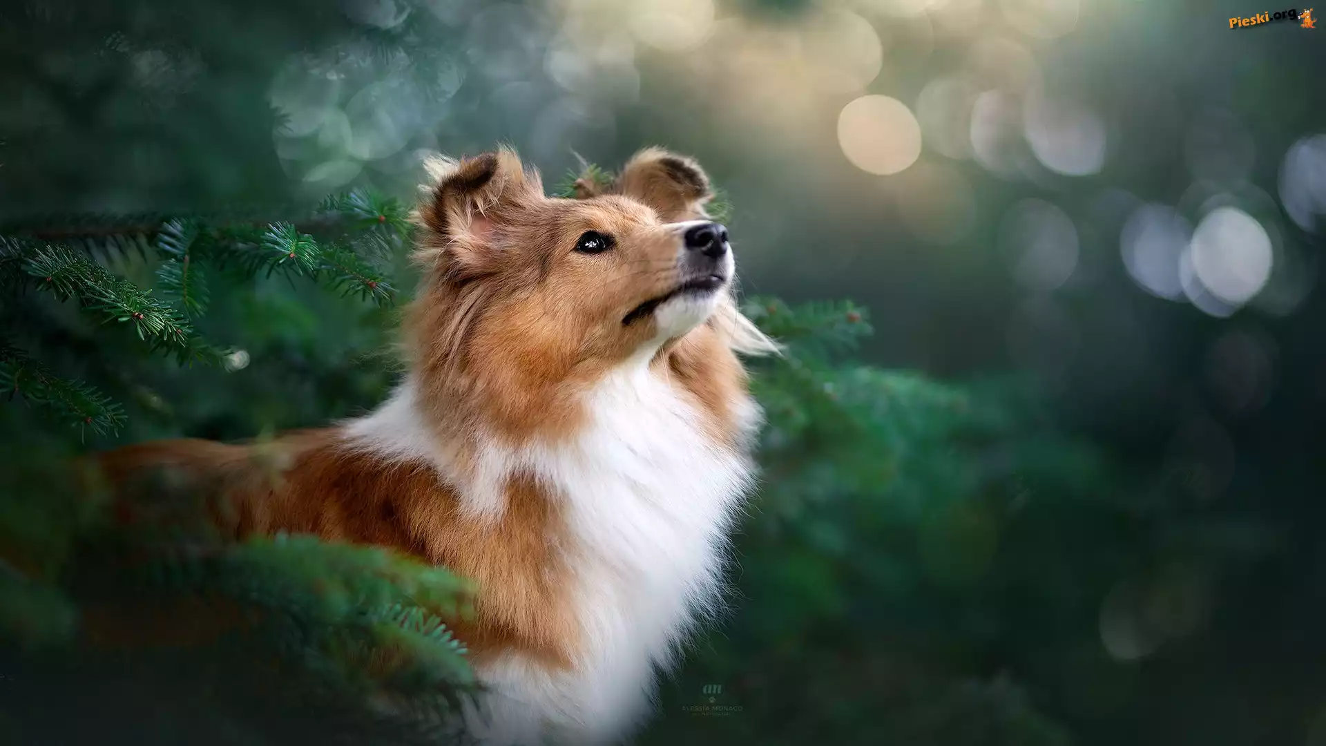 Świerk, Gałązki, Pies, Owczarek szetlandzki