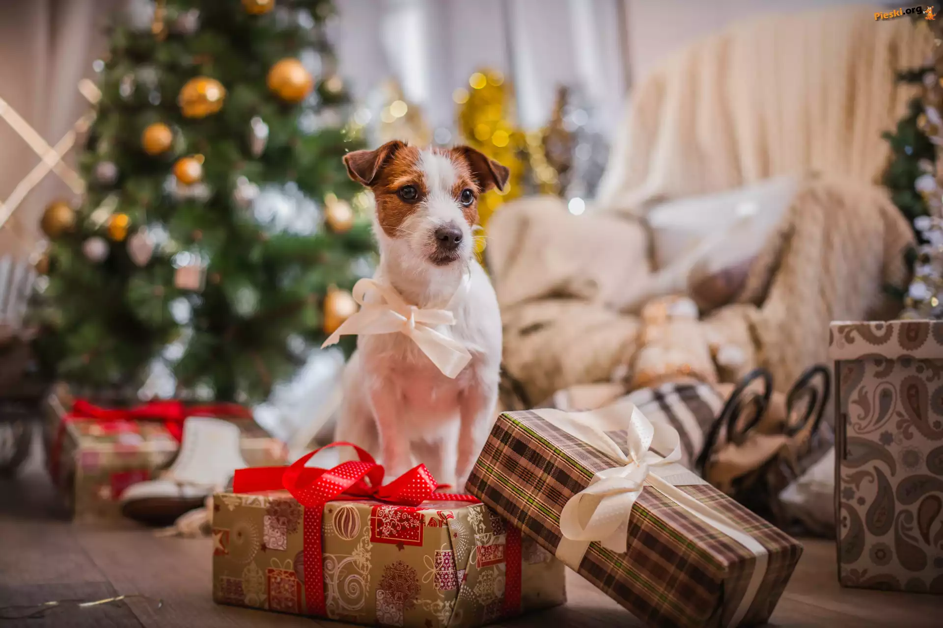 Prezenty, Jack Russell terier, Pies, Kokardka, Święta