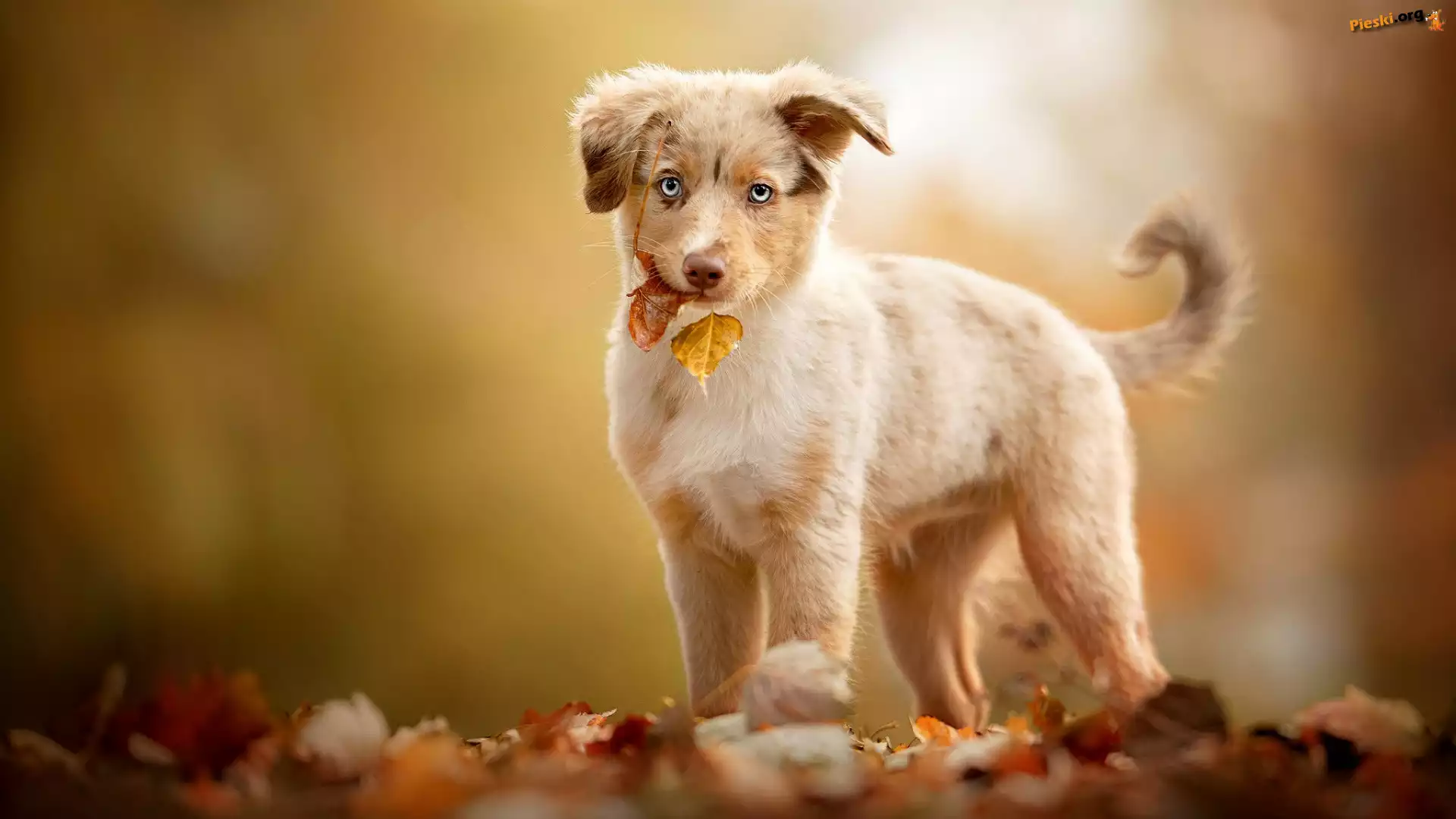 Jesień, Owczarek australijski, Pies, Szczeniak, Liście, Pieski