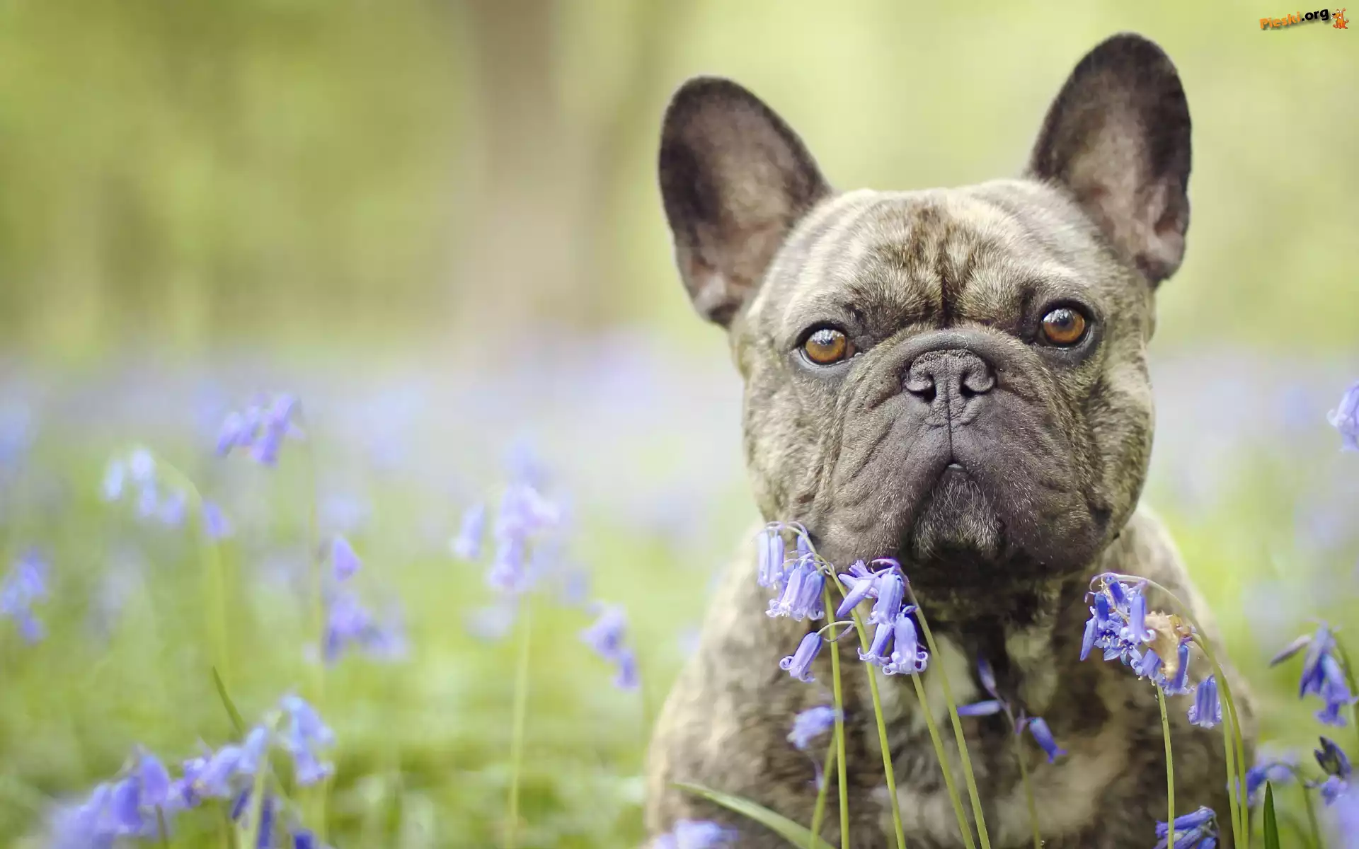 Kwiaty, Pies, Buldog francuski, Cebulica, Pieski