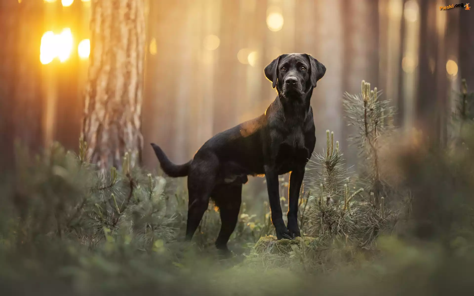 Las, Labrador retriever, Czarny, Pies