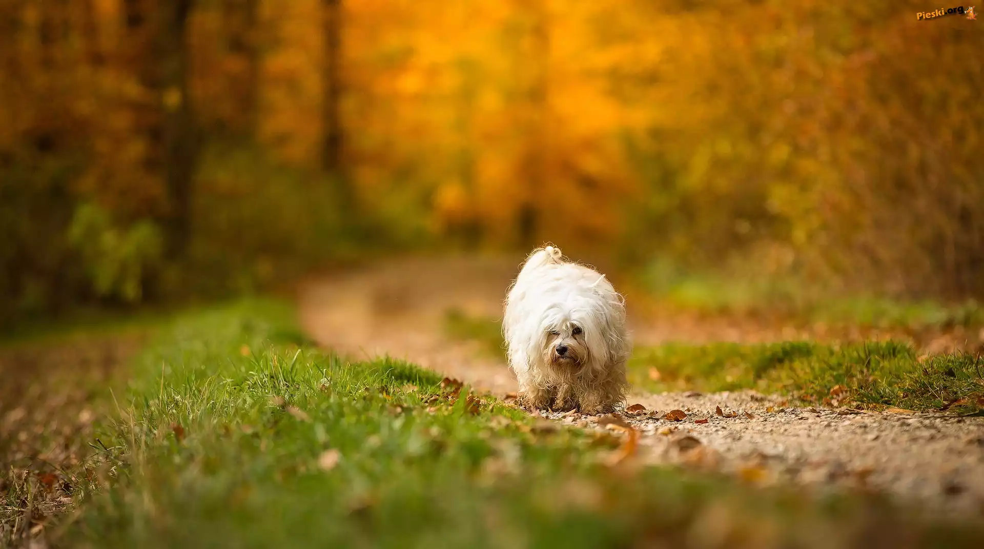 Ścieżka, Hawańczyk, Las, Trawa, Pieski