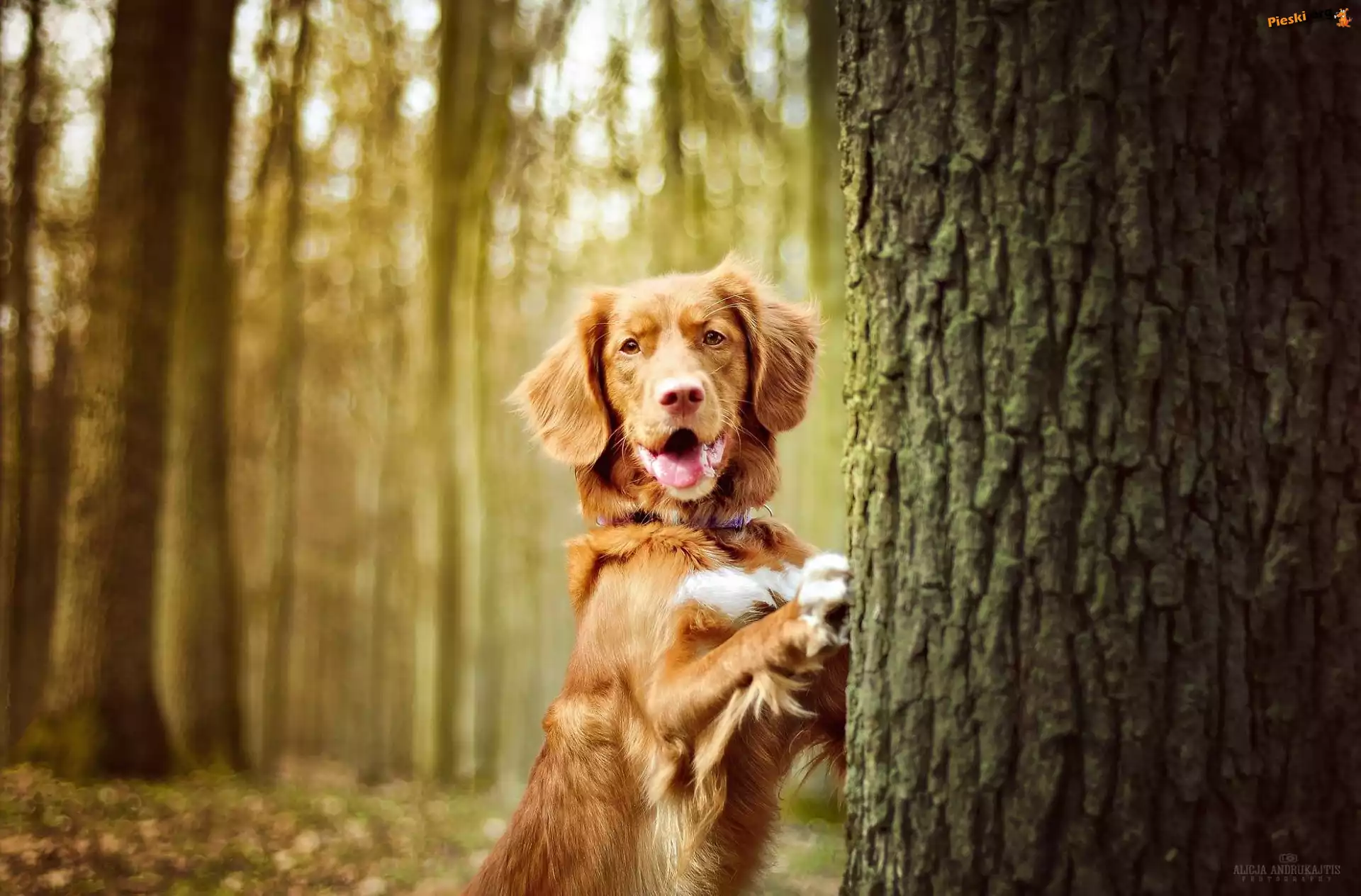 Pies, Las, Drzewo, Pieski
