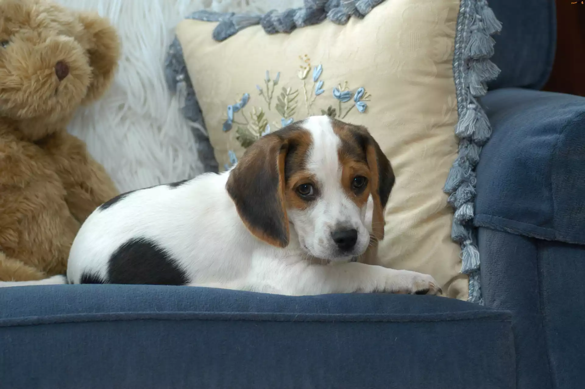 Leżący, Pluszowy, Poduszka, Pies, Kanapa, Miś, Pieski