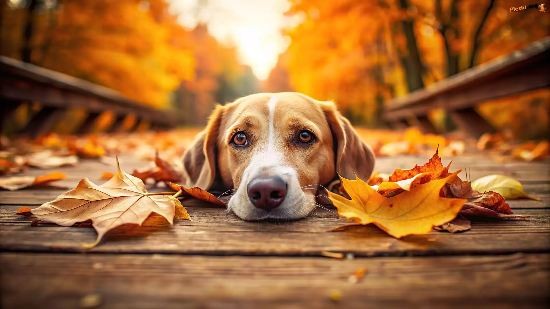 Grafika, Jesień, Pies, Liście, Pieski