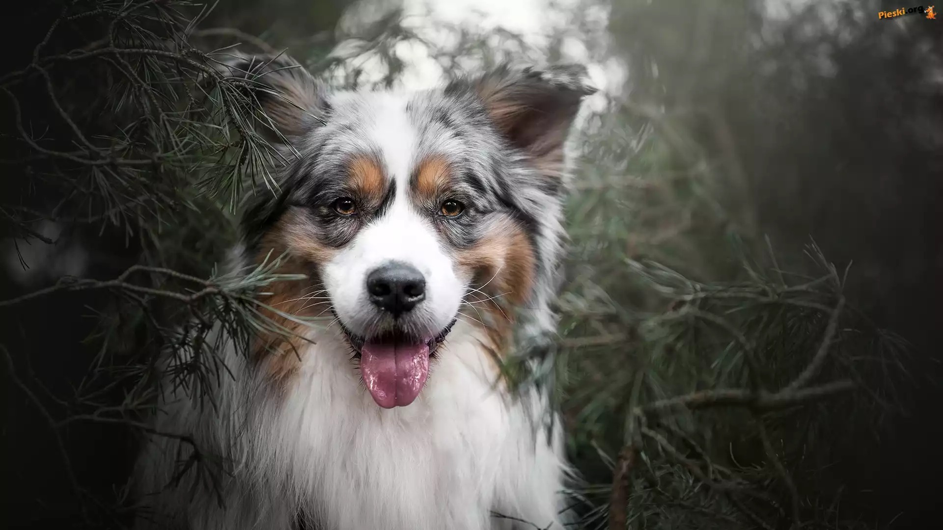 Mordka, Pies, Owczarek australijski, Gałązki, Pieski