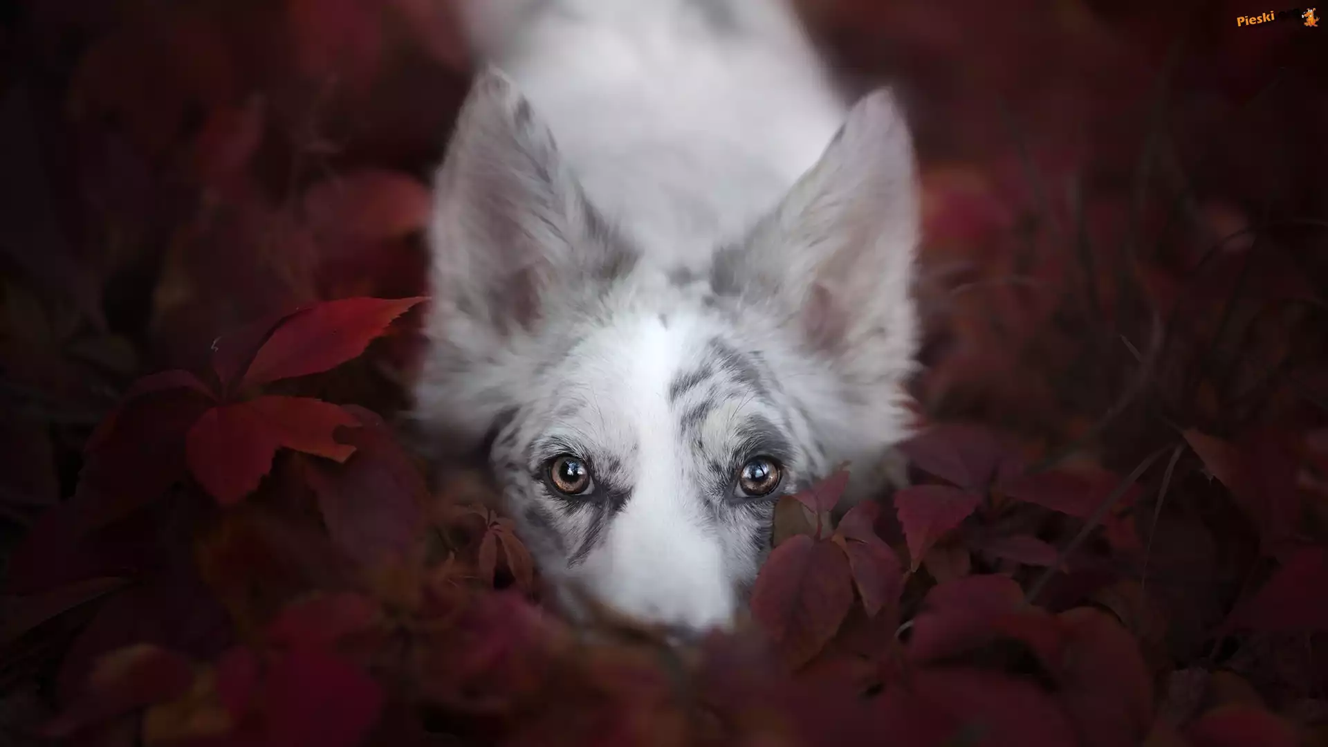 Mordka, Pies, Border collie, Liście, Pieski