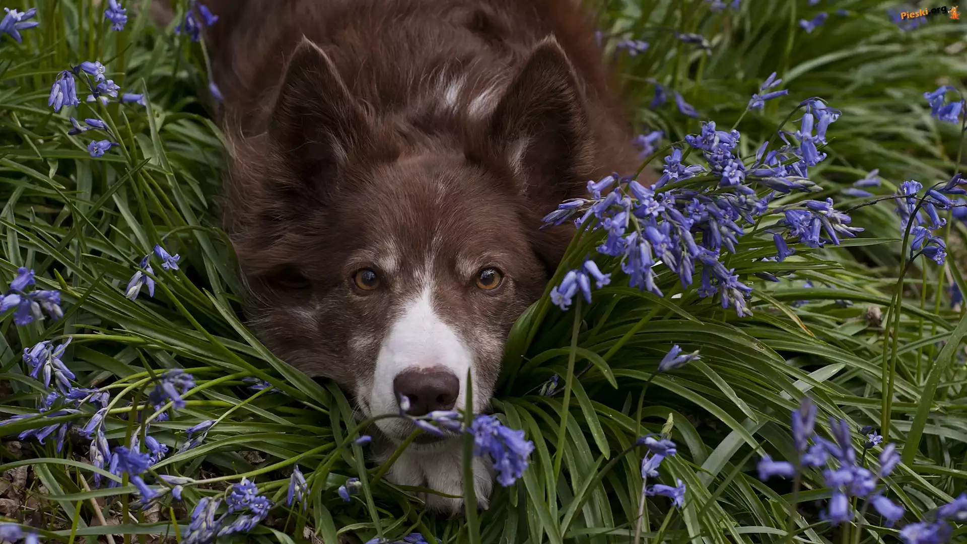 Mordka, Pies, Leżący, Border collie, Kwiaty, Pieski