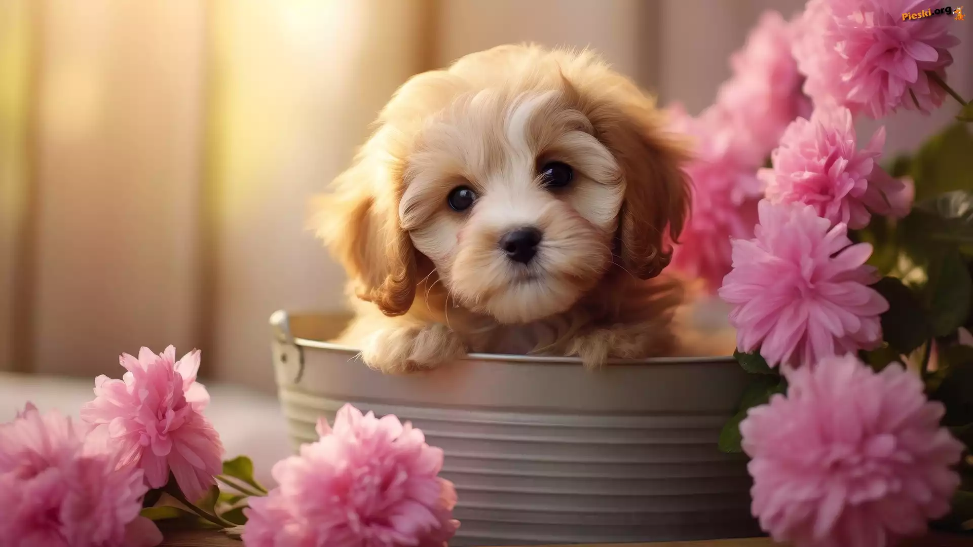 Szczeniak, Kwiaty, Pies, Mordka, Pieski