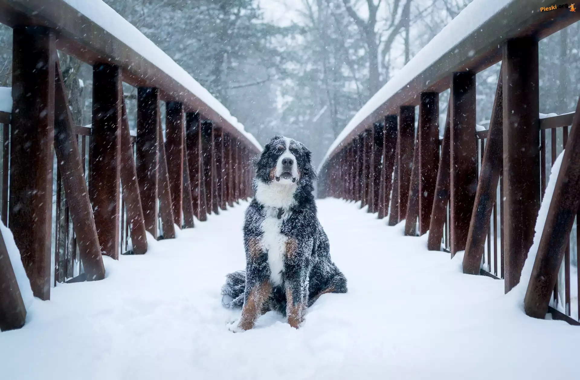 Most, Pies, Berneński pies pasterski, Śnieg