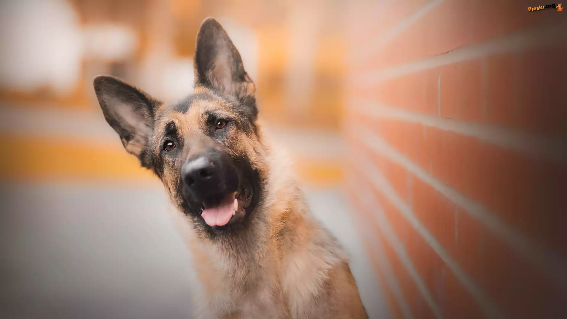 Mur, Owczarek niemiecki, Pies, Mordka, Cegły, Pieski