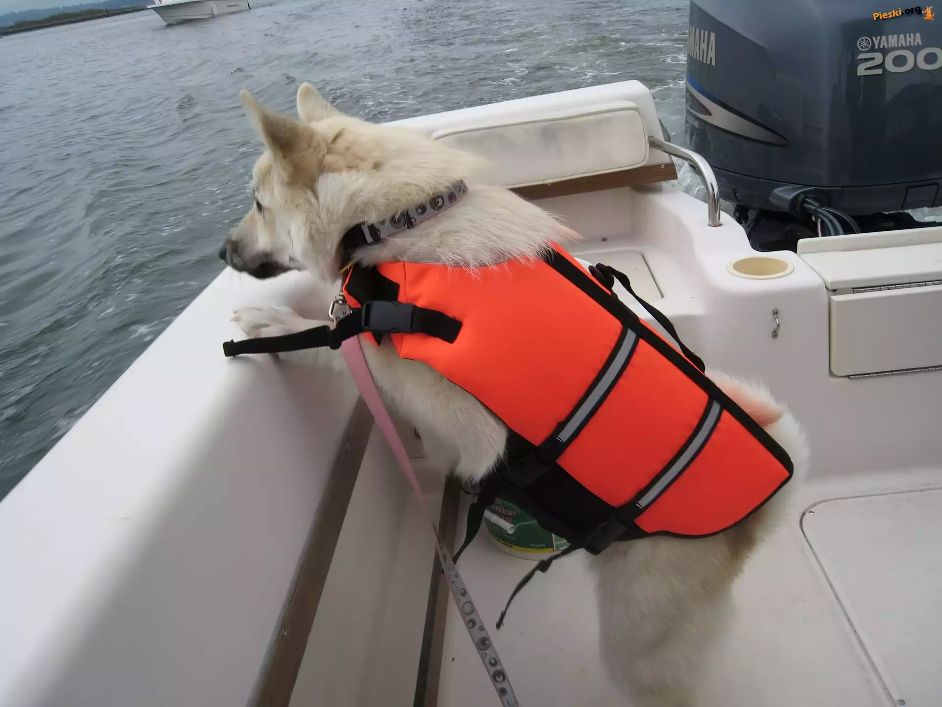Przyczajony, Norsk Buhund Ziewający, Norsk Buhund Norsk Buhund, zima Norsk Buhund, pomarańczowy, kapok Norsk Buhund, kapok Norsk Buhund, fale, motorówka