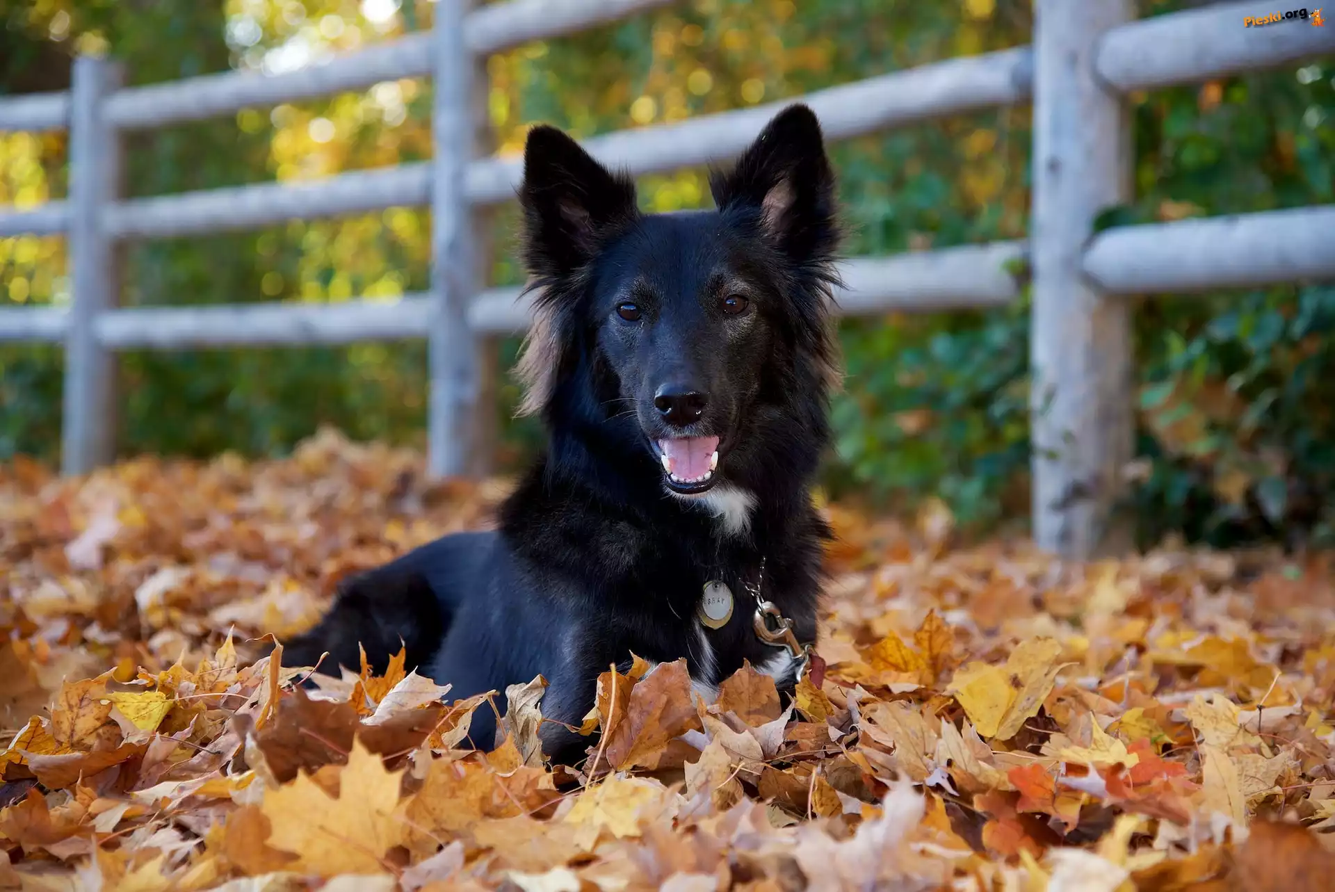 Smutne, Czarny, Pies, Oczy Jesienne, Pies, Spojrzenie, Licie Jack Russell Terrier, Kwiatek Las, Pies, Braque d Jamnik, Obroa, Serduszko Gowa, Owczarka pirenejskiego, Berger des Pyrnes Labrador Retriever Bernardyn, Kotki, Koty