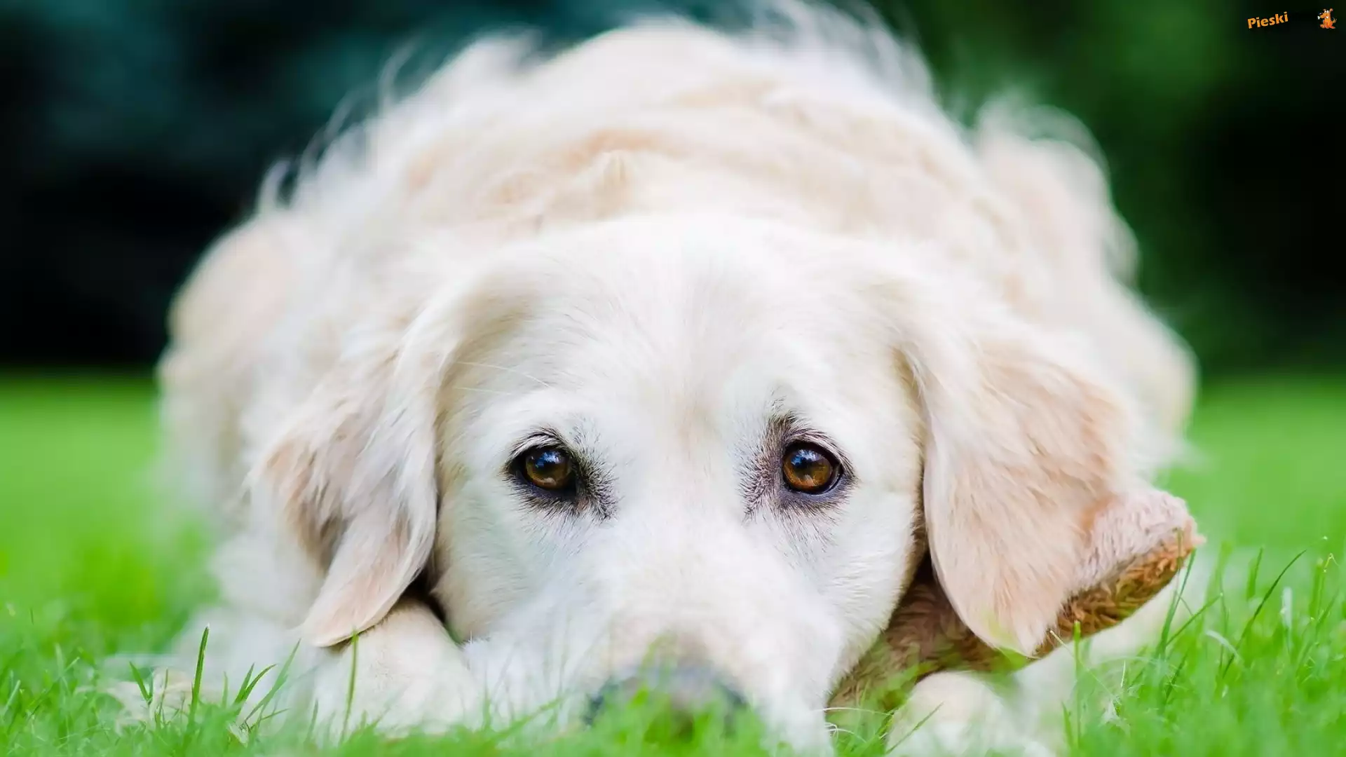 Oczy, Biały, Piesek, Trawa, Pieski