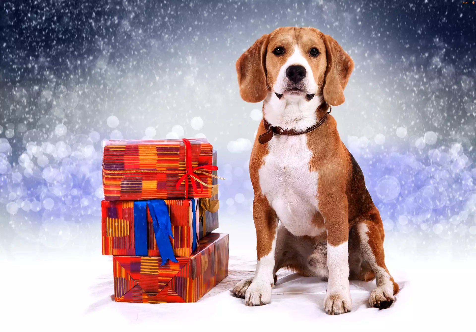 Padający, Beagle, Prezenty, Śnieg