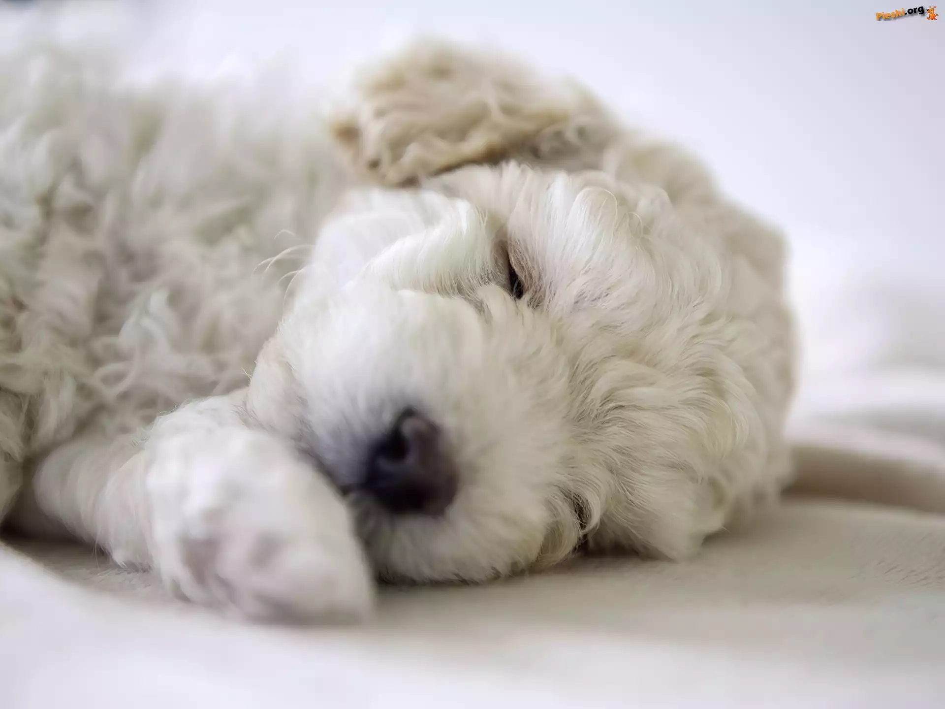 Szczeniak, Biały, Śpiący, Pudel