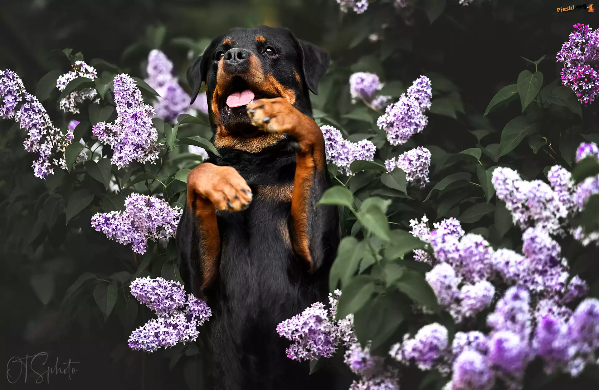 Bez, Kwiaty, Rottweiler, Pies