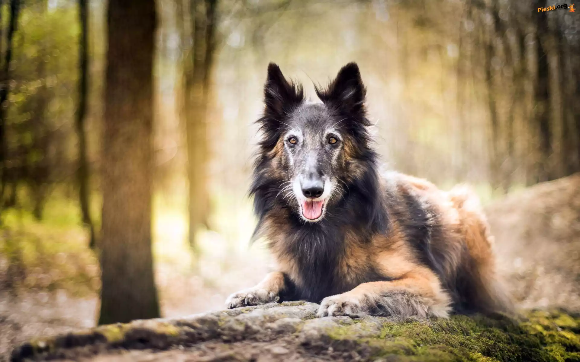 Leżący, Pies, Mech, Pieski