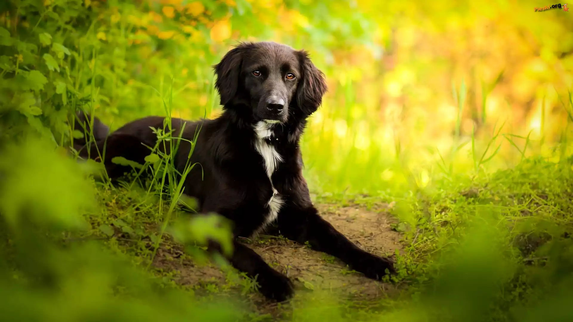 Smutne, Czarny, Pies, Oczy Jesienne, Pies, Spojrzenie, Licie Jack Russell Terrier, Kwiatek Las, Pies, Braque d Jamnik, Obroa, Serduszko Gowa, Owczarka pirenejskiego, Berger des Pyrnes Labrador Retriever Bernardyn, Kotki, Koty