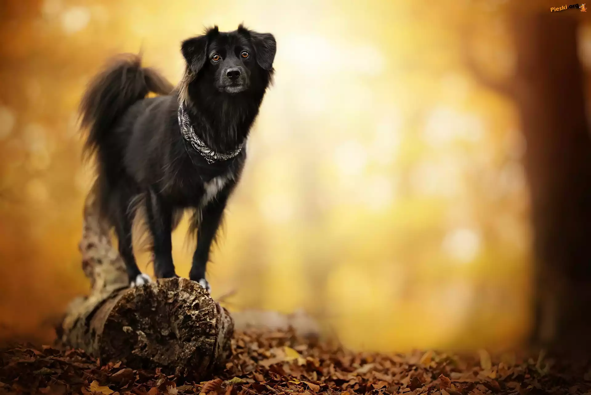 Smutne, Czarny, Pies, Oczy Jesienne, Pies, Spojrzenie, Licie Jack Russell Terrier, Kwiatek Las, Pies, Braque d Jamnik, Obroa, Serduszko Gowa, Owczarka pirenejskiego, Berger des Pyrnes Labrador Retriever Bernardyn, Kotki, Koty