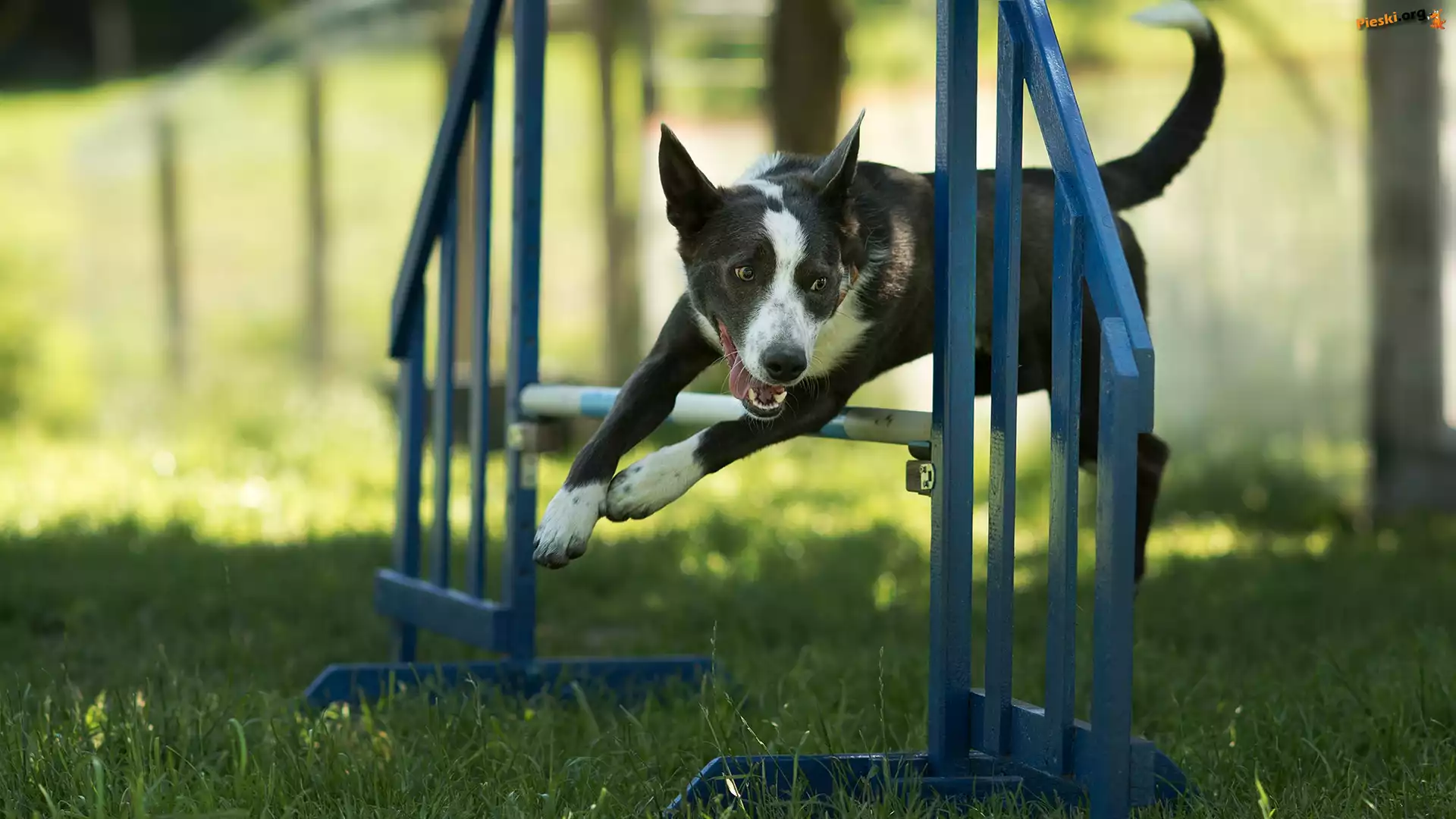 Płotek, Pies, Trawa, Skok