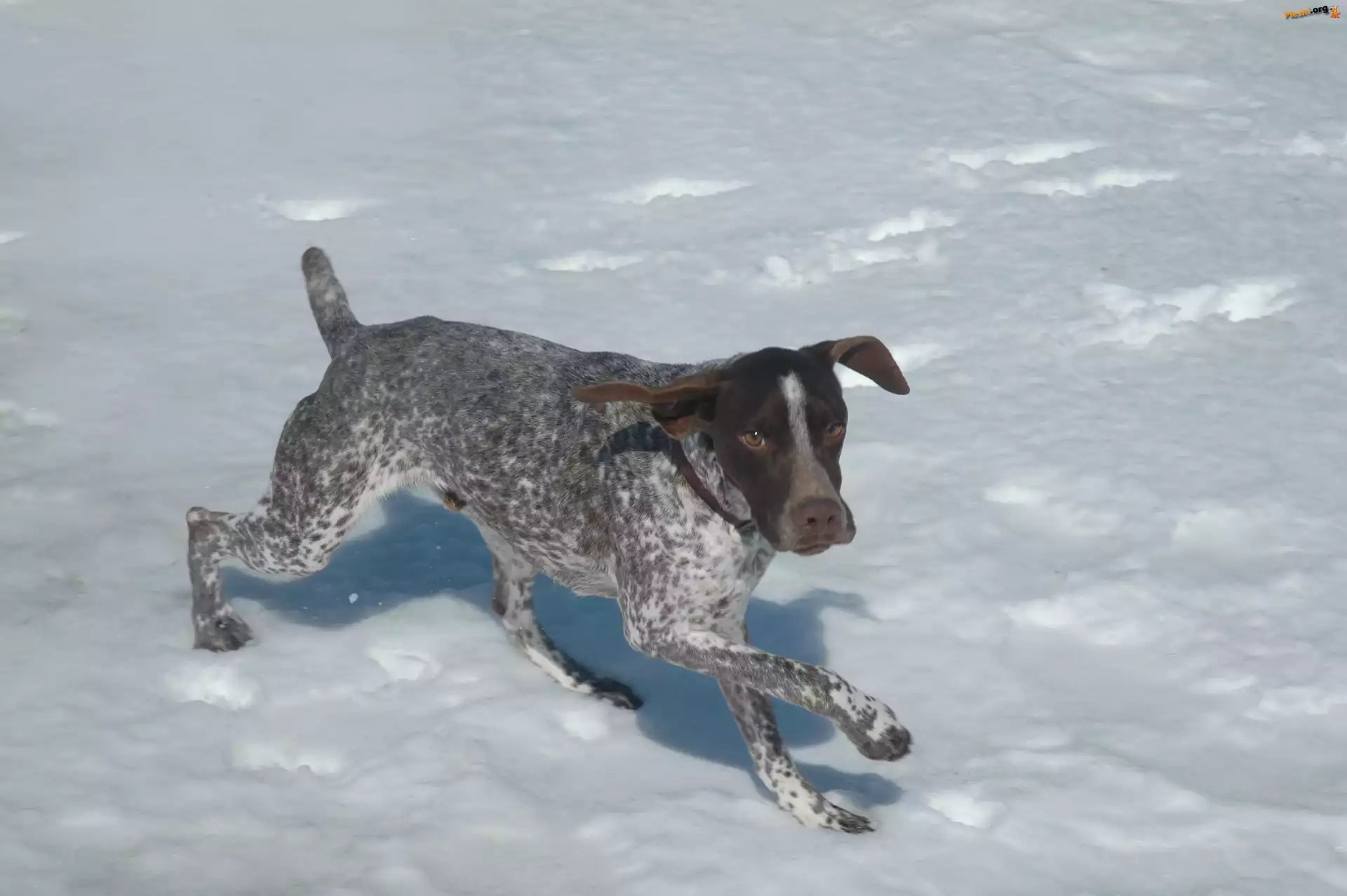 Ładny, Pies, Myśliwski Pointer, śnieg Trawa, Pointer, Łatka, Kwiaty Pies, Orzeł, Przyjaciele morda, Pointera Pointer, czarne, kropki
