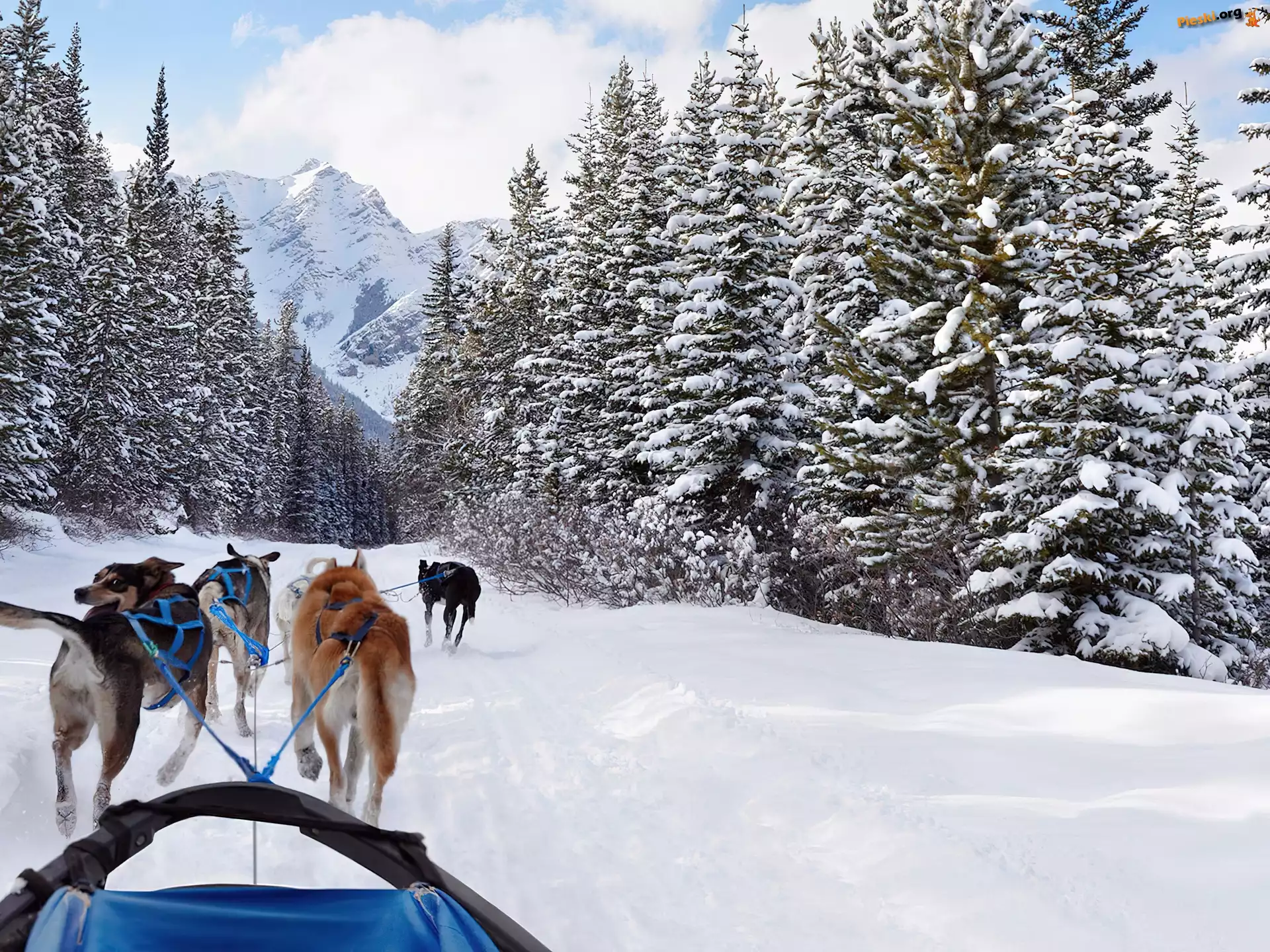 Psi, Las, Góry, Zima, Zaprzęg, Pieski