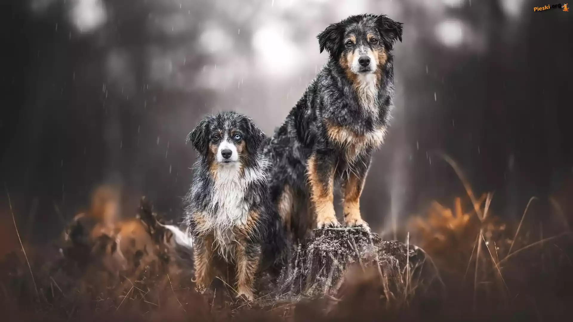 Psy, Rośliny, Dwa, Pieniek, Mokre, Pieski