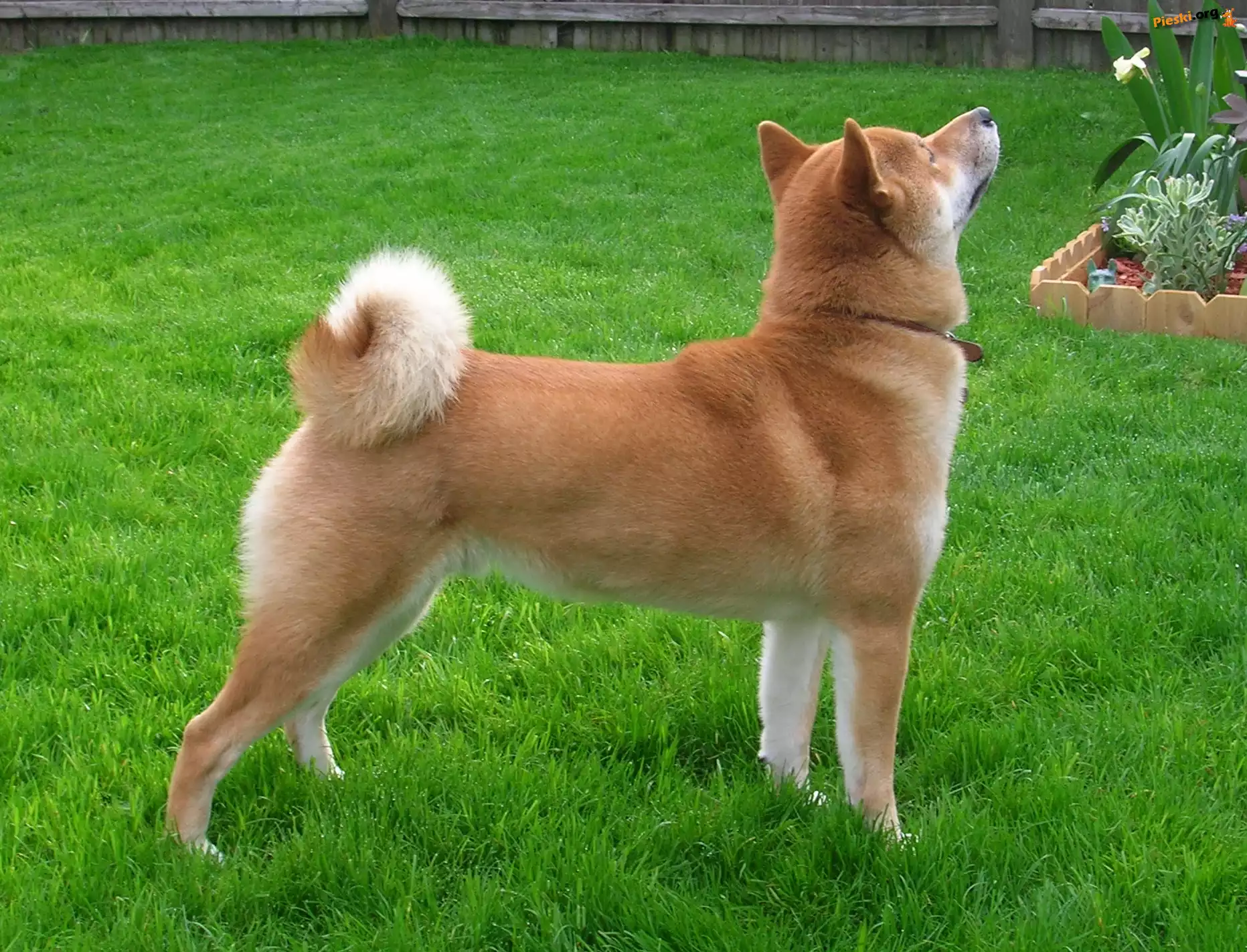 Shiba inu, soczysto-zielona, trawa, Pieski