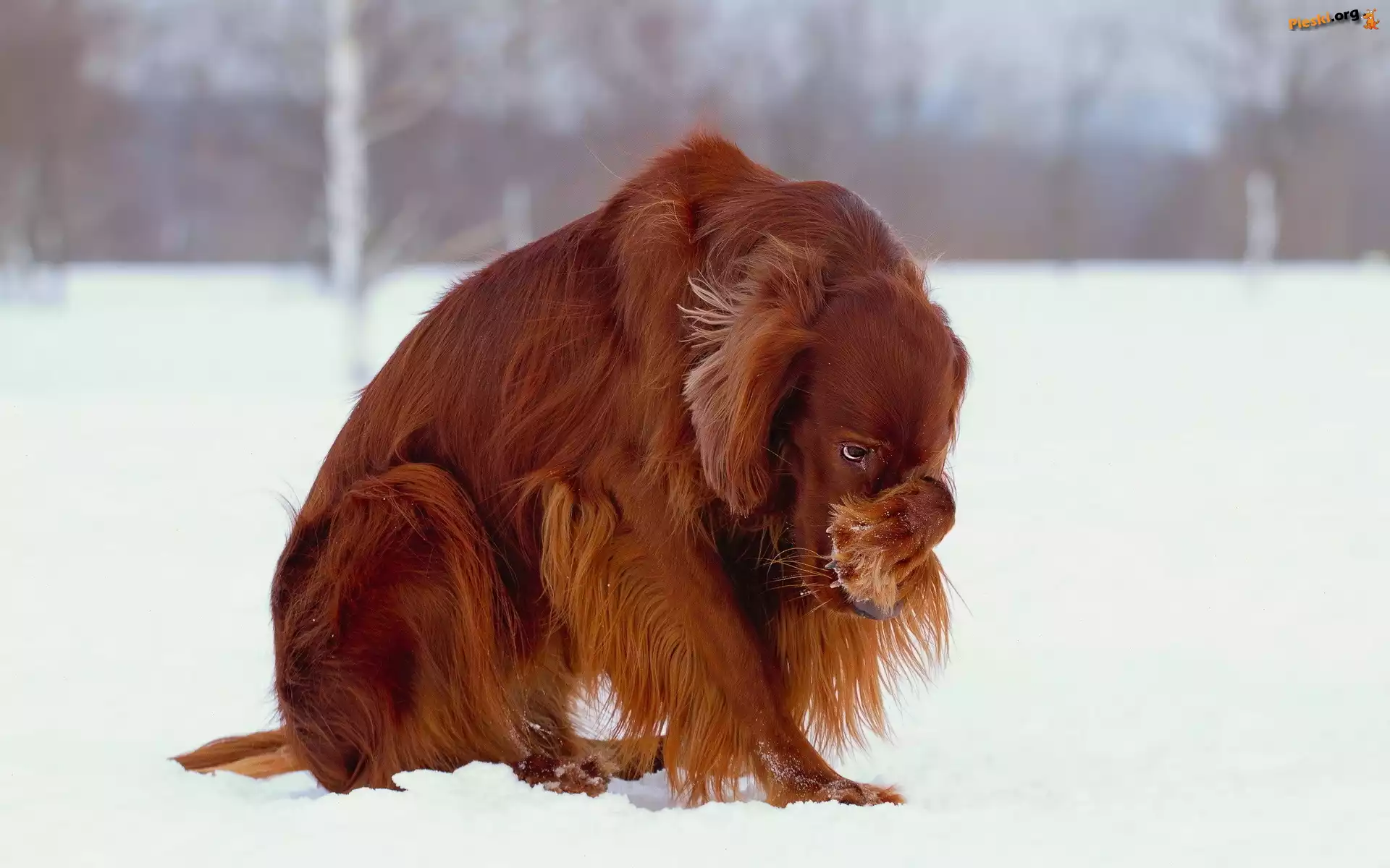 Smutek, Irlandzki, Seter, Przewinienie, Zima, Pieski