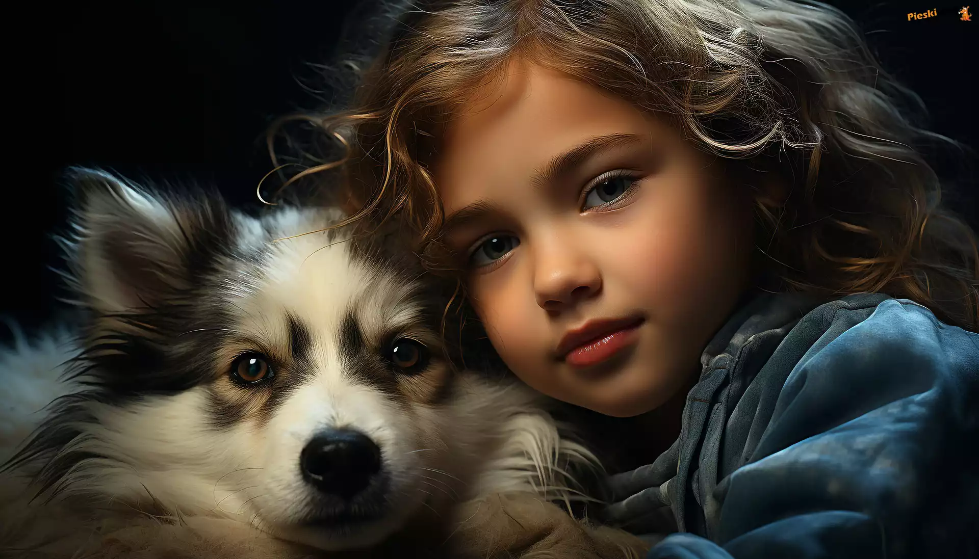 Grafika, Dziecko, Kurtka, Szczeniak, Dziewczynka, Uśmiech, Pies, Pieski