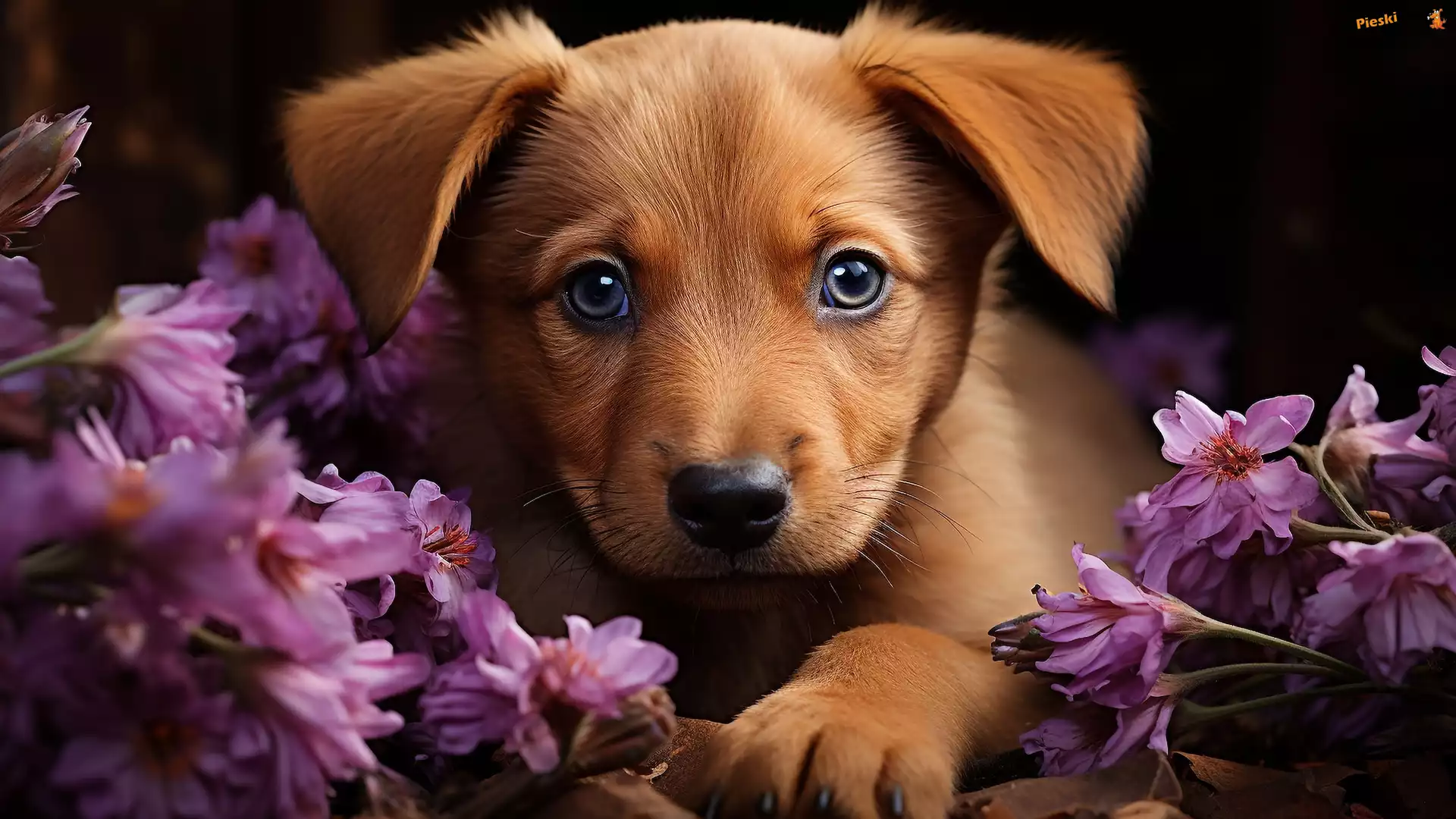 Kwiaty, Brązowy, Pies, Szczeniak, Pieski