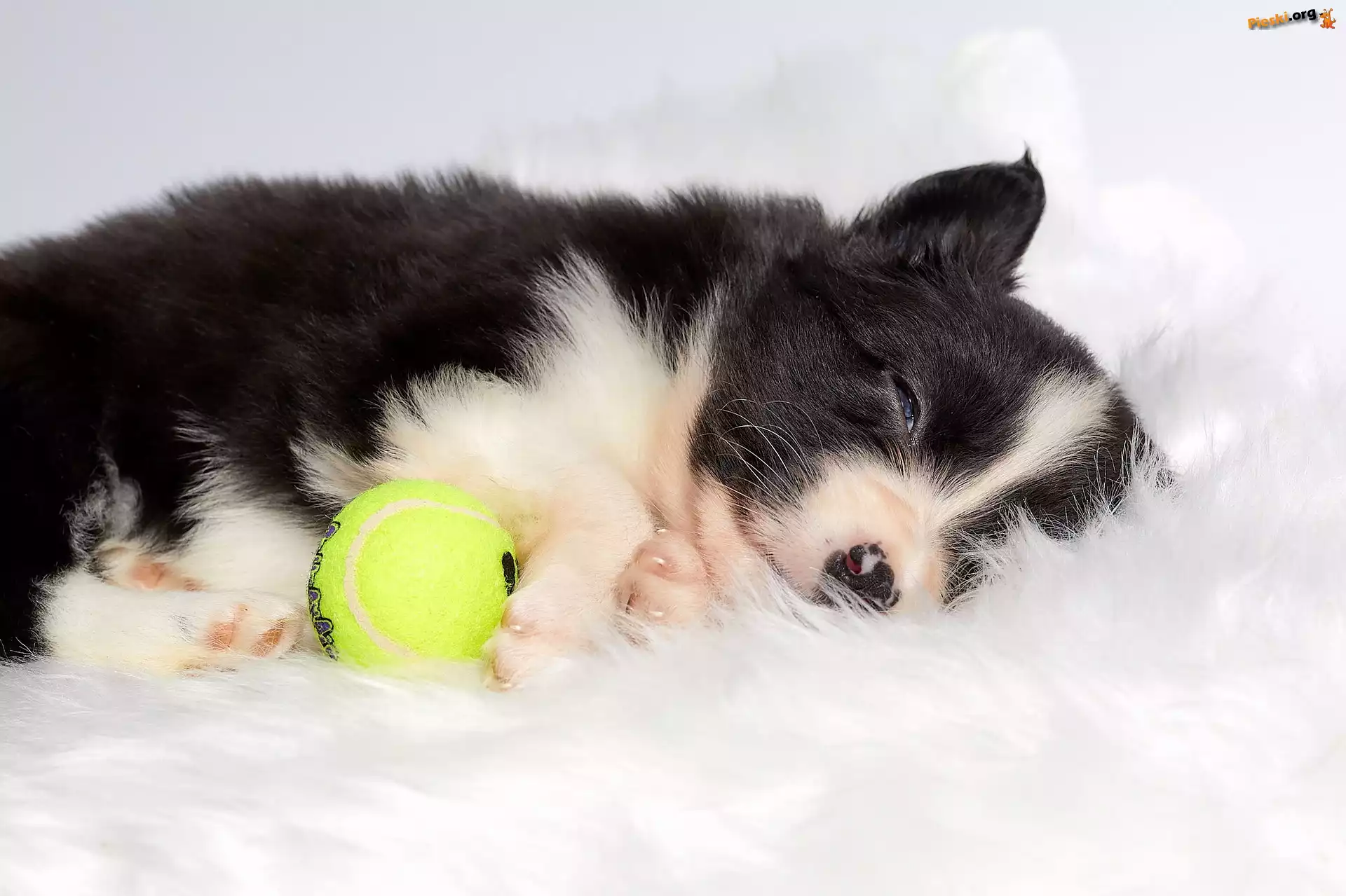 Szczeniak, Biało-czarny, Pies, Piłeczka, Pieski