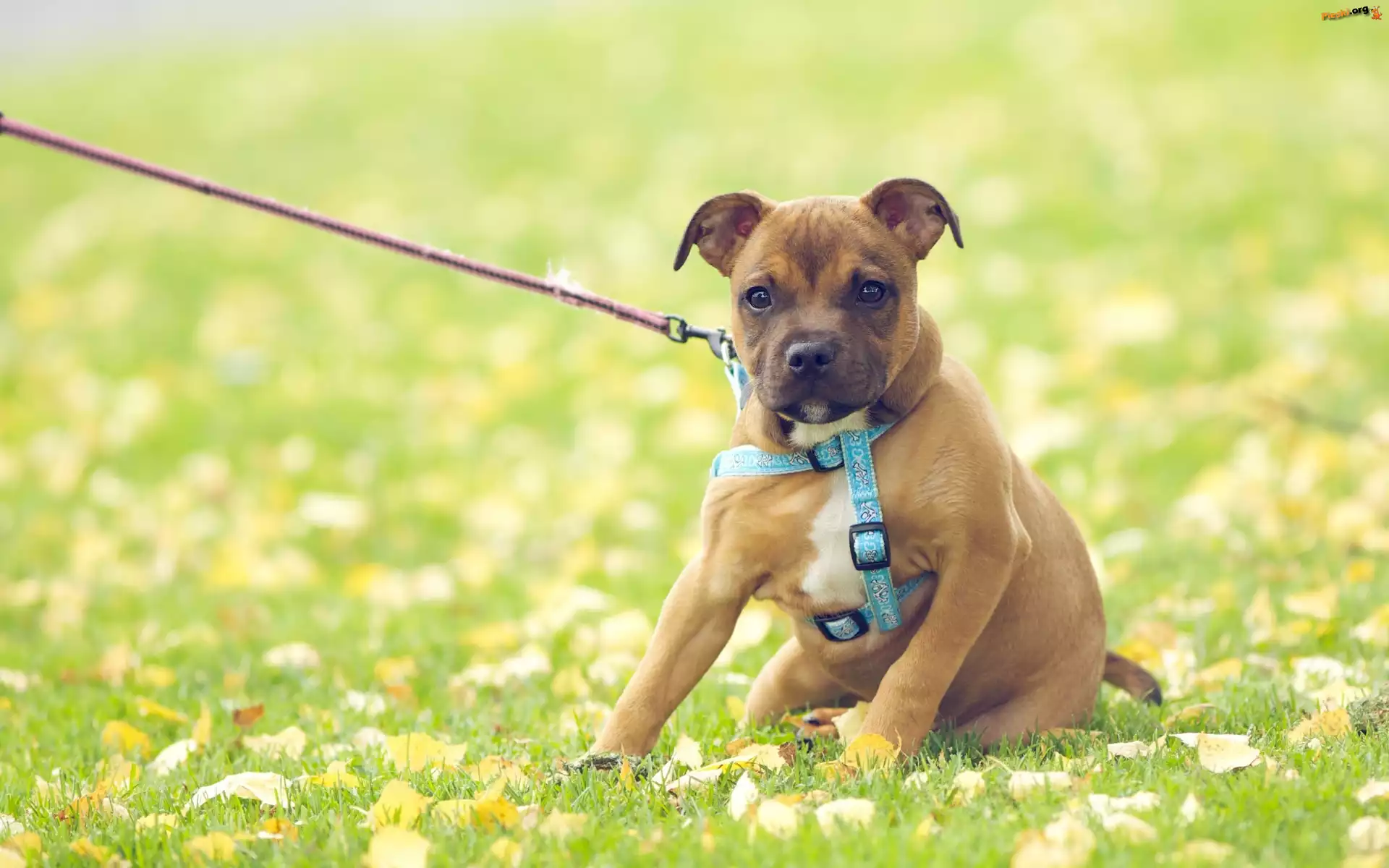 Łąka, Piesek, Szczeniak, Smycz