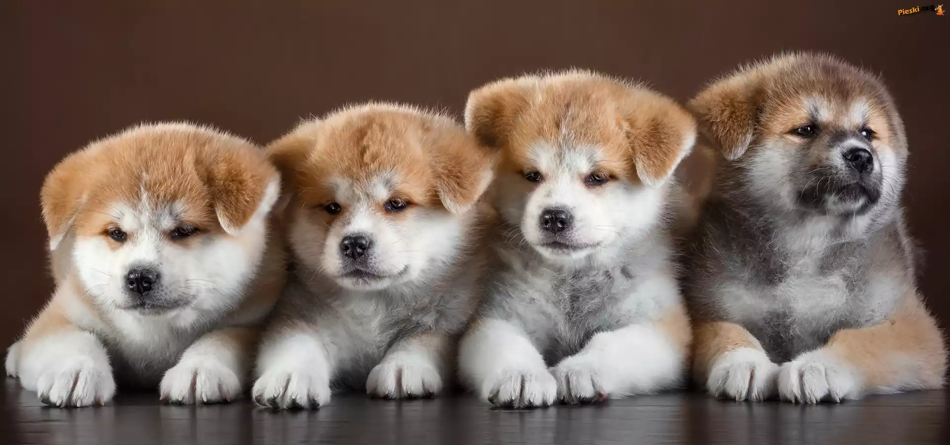 Szczeniaki, Cztery, Słodkie, Akita inu, Pieski