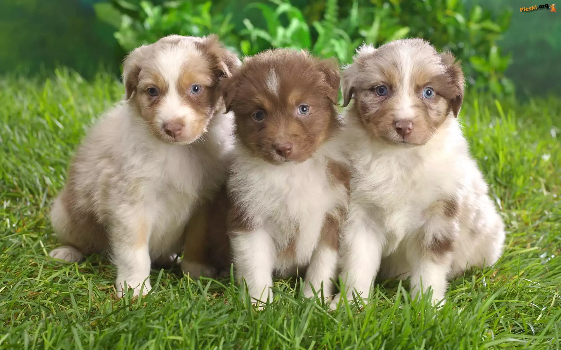 Owczarki australijskie, Trzy, Szczeniaki, Australian shepherd