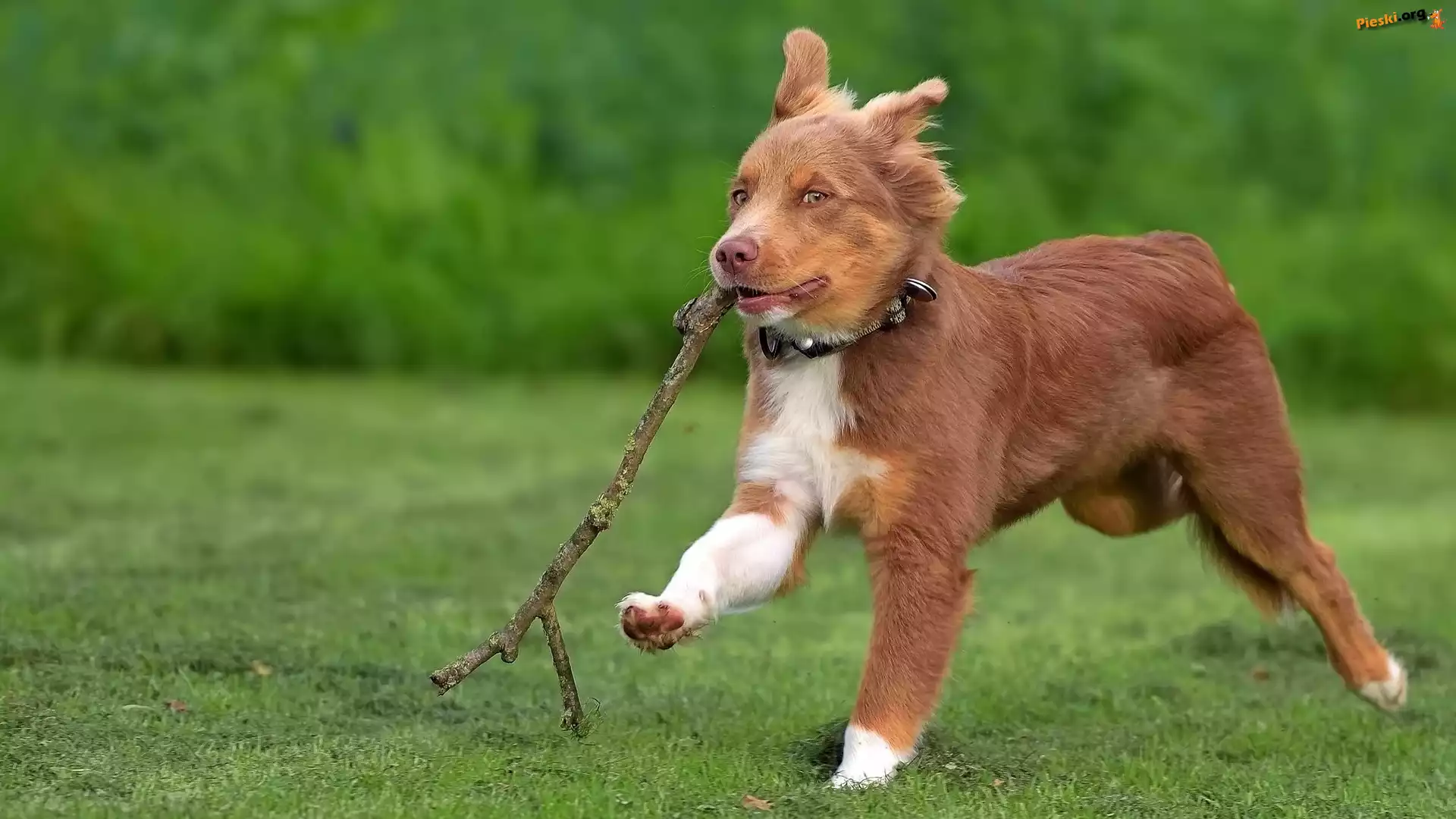 Patyk, Szczeniak, Pies, Trawa, Owczarek australijski, Pieski
