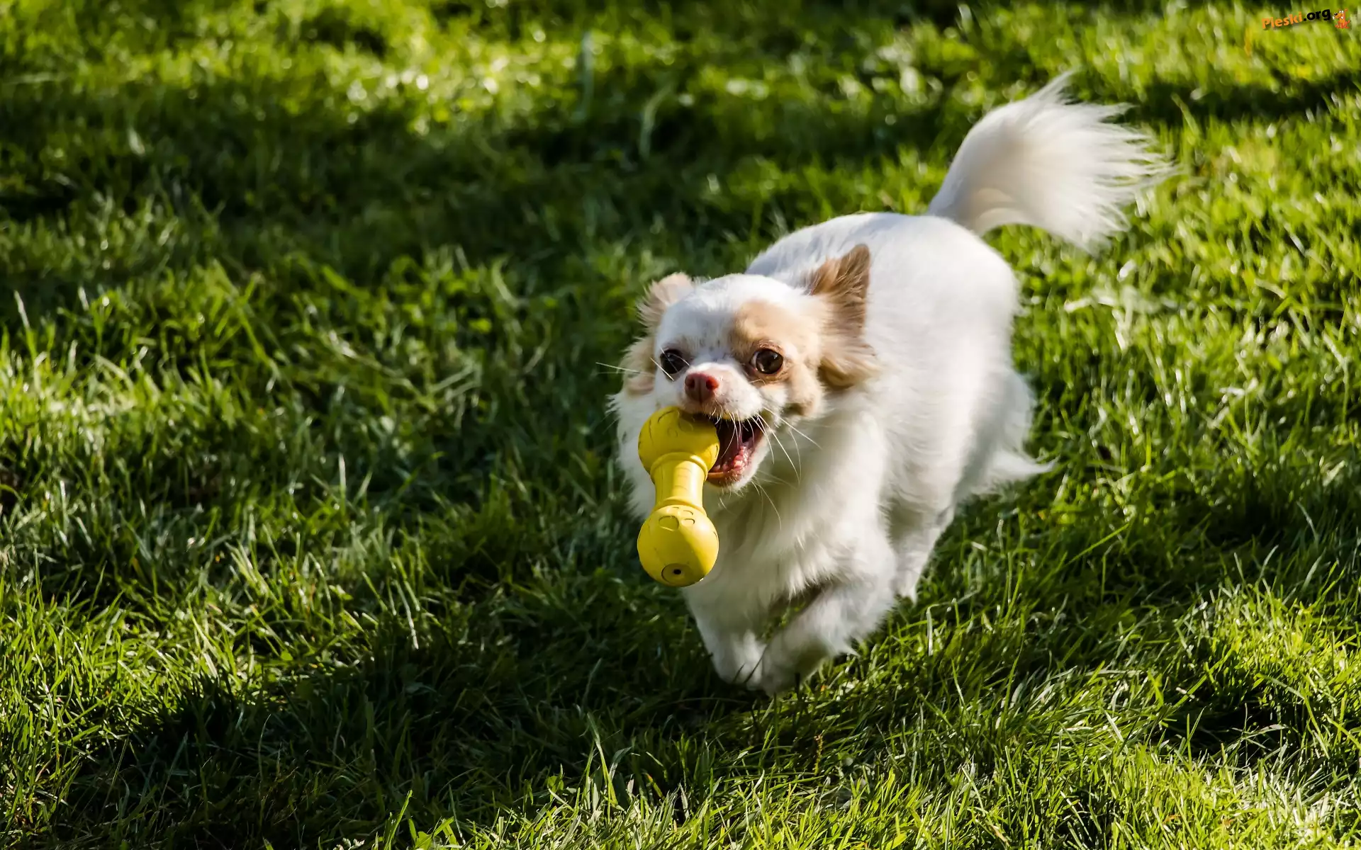 Trawa, Pies, Chihuahua, Zabawka, Pieski