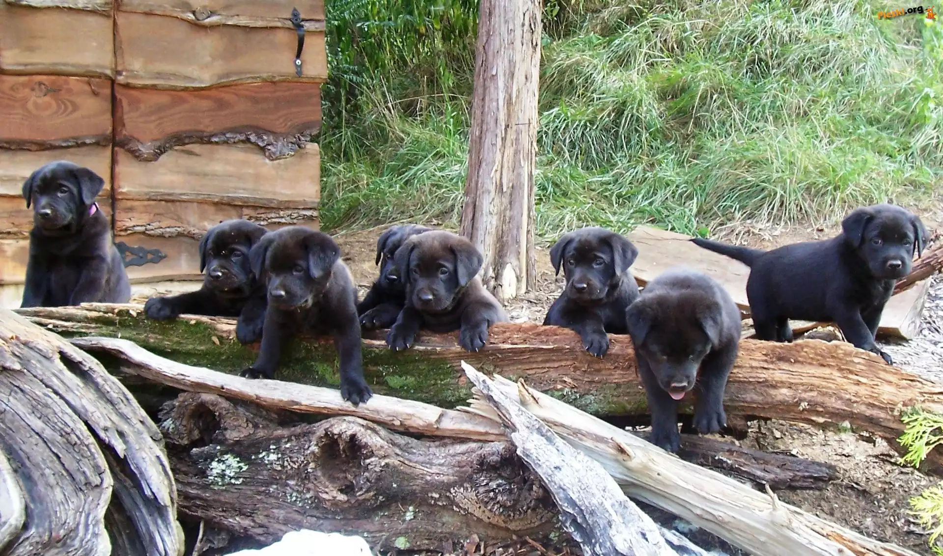 Trawa, Szczeniaki, Kłody, Labradory Retrievery